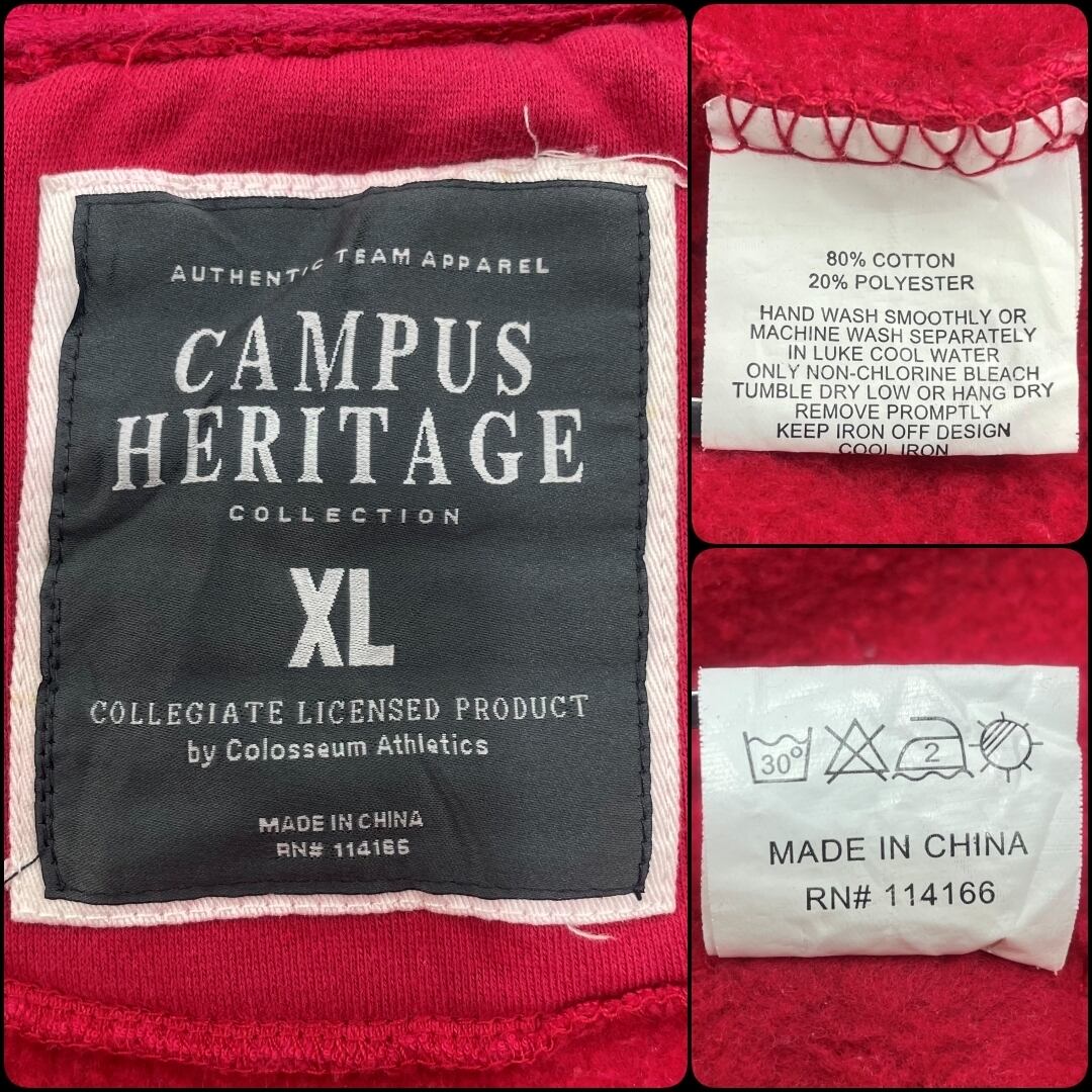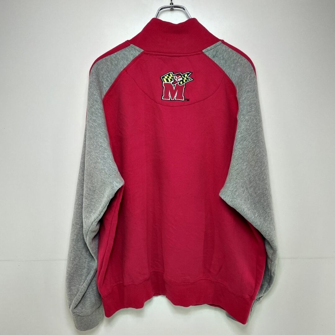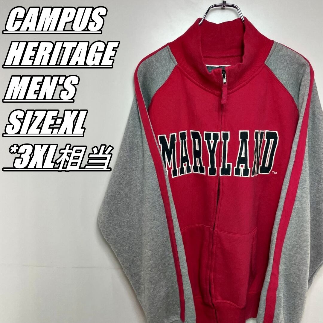 【US古着】CAMPUS HERITAGE キャンパスヘリテージ ジップアップトレーナー キャンパスロゴ刺繍 メンズ サイズ表記XL 3XL相当 レッド×グレー