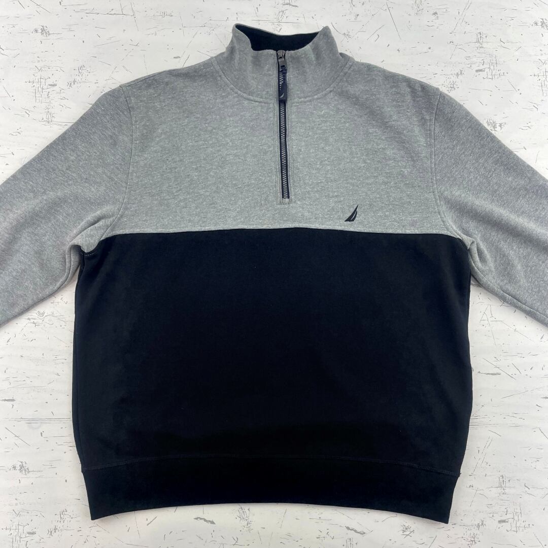 【US古着】NAUTICA ノーティカ ハーフジップトレーナー メンズ サイズ表記L 2XL~3XL相当 グレー×ブラック
