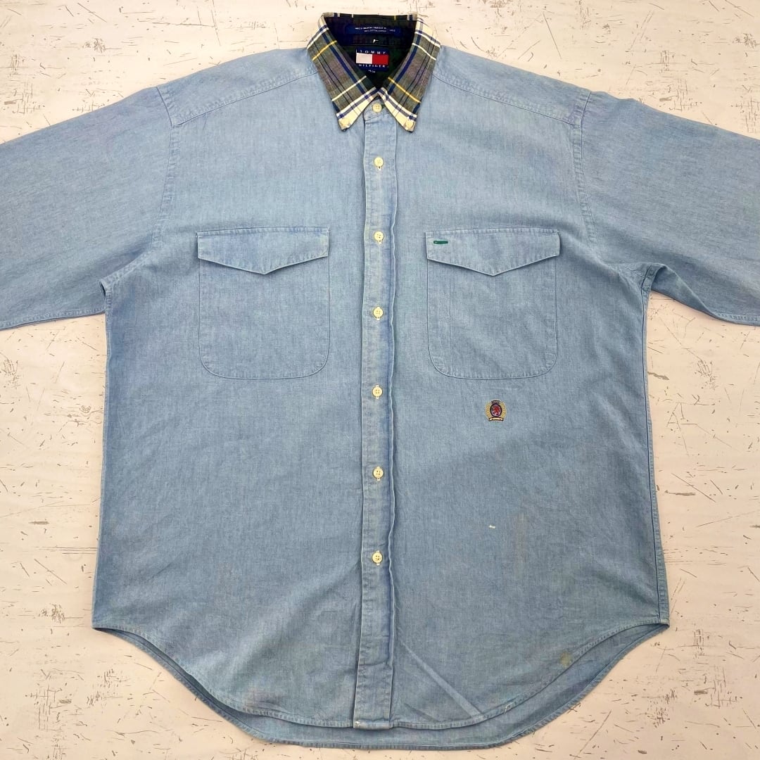 【US古着】TOMMY HILFIGER トミーヒルフィガー シャツ メンズ サイズ表記M XL~2XL相当 ライトブルー