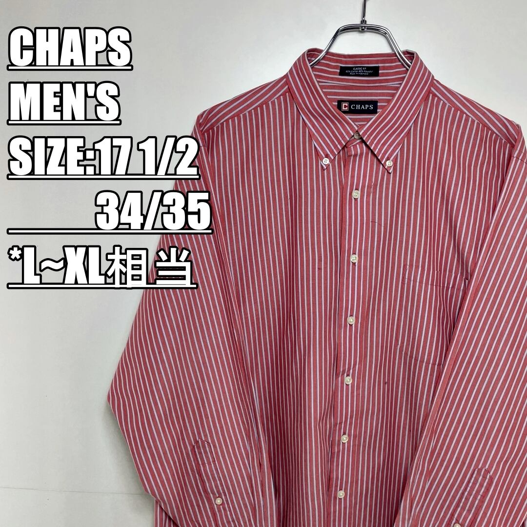 【US古着】CHAPS チャップス BDストライプシャツ メンズ サイズ表記17 1/2 34/35 L~XL相当 レッド×ホワイト
