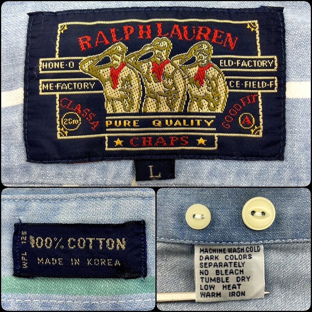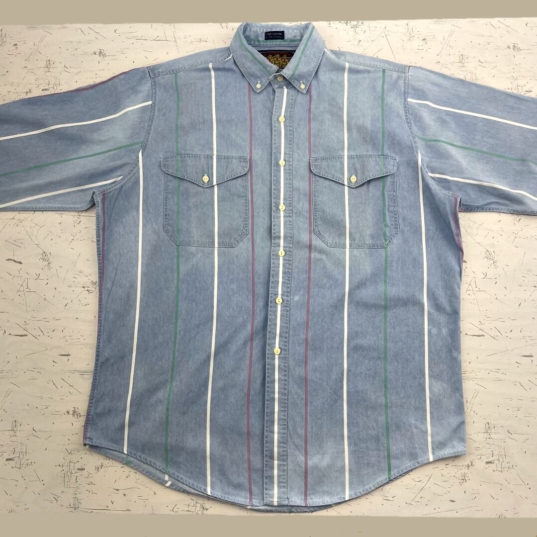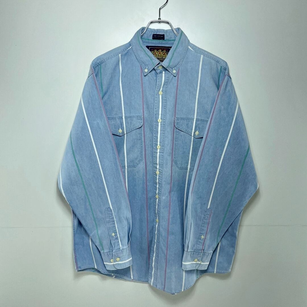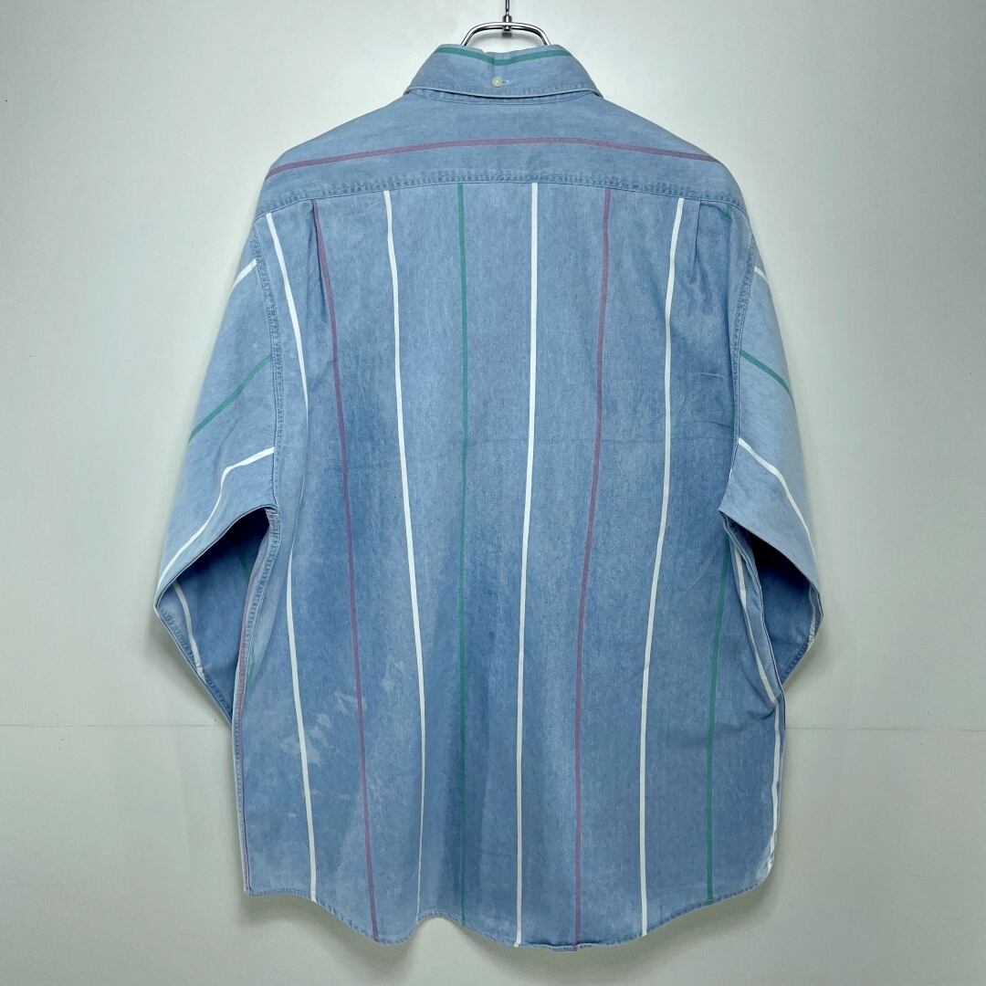 【US古着・90s】CHAPS RALPH LAUREN チャップス ラルフローレン BDストライプシャツ メンズ サイズ表記L XL~2XL相当 ライトブルー×マルチカラー