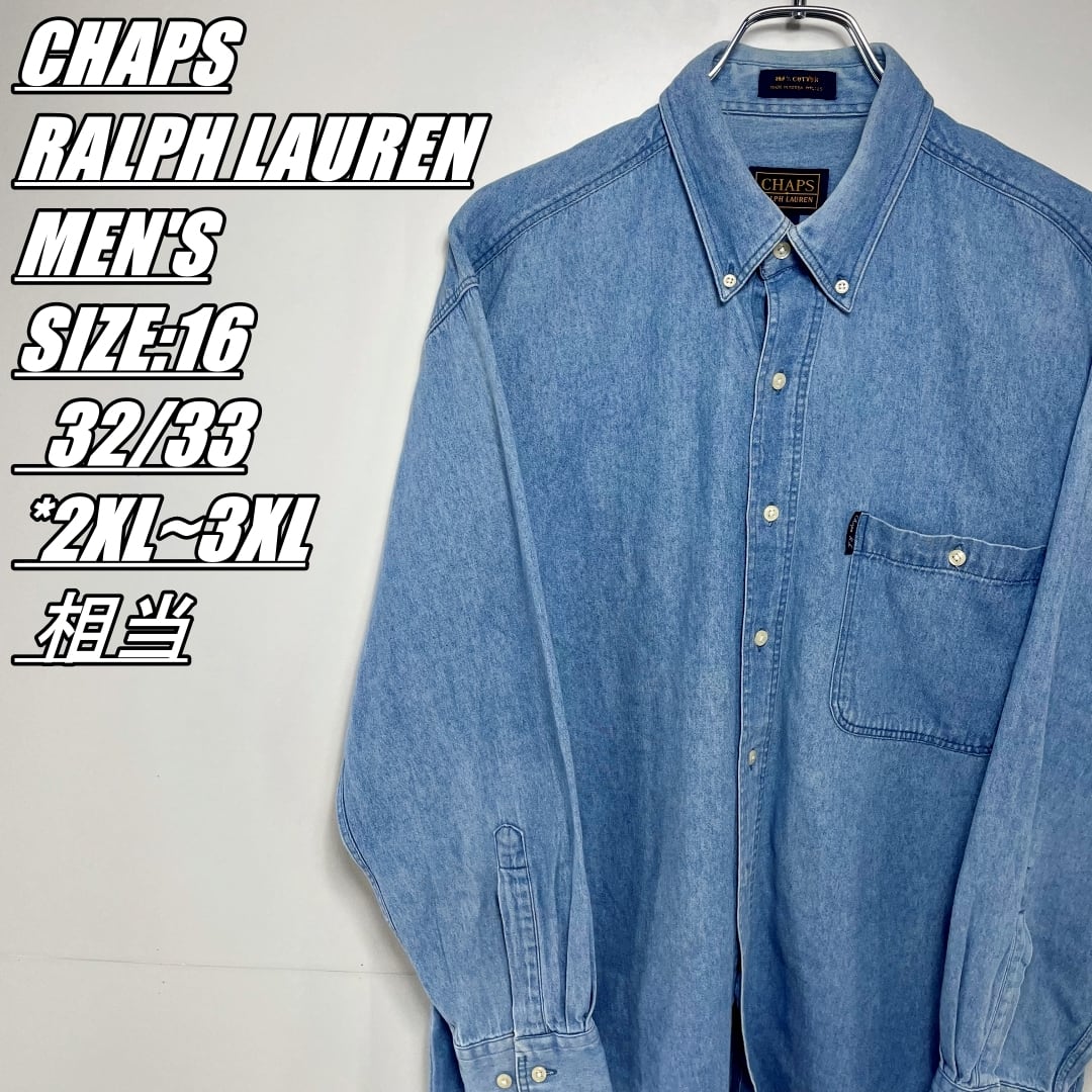 【US古着・90s】CHAPS RALPH LAUREN チャップス ラルフローレン デニムシャツ メンズ サイズ表記16 32-33 2XL~3XL相当 インディゴ