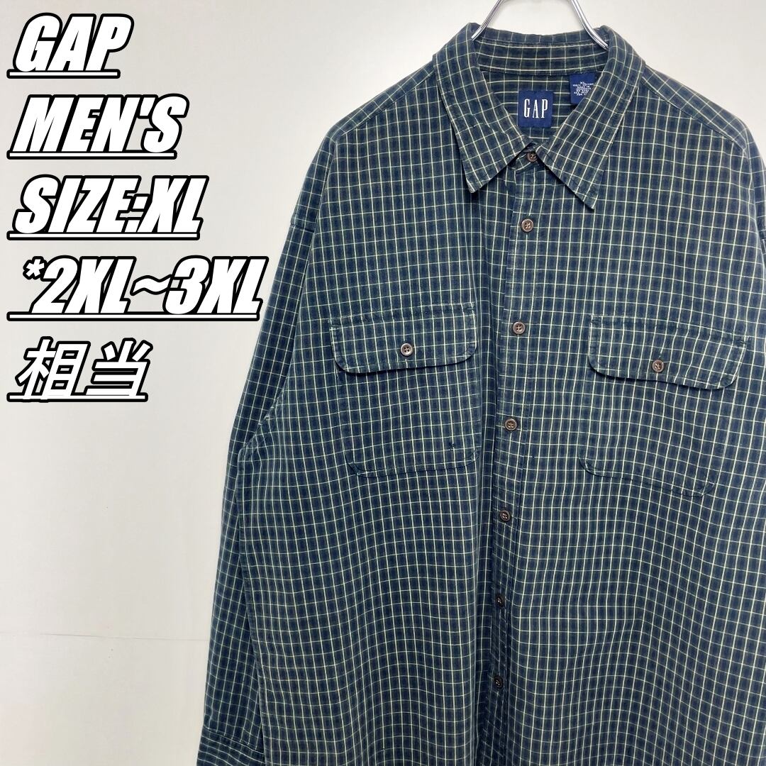 【US古着・90’s】OLD GAP ギャップ 長袖チェックシャツ メンズ サイズ表記XL 2XL~3XL相当グリーン×ネイビー×ホワイト