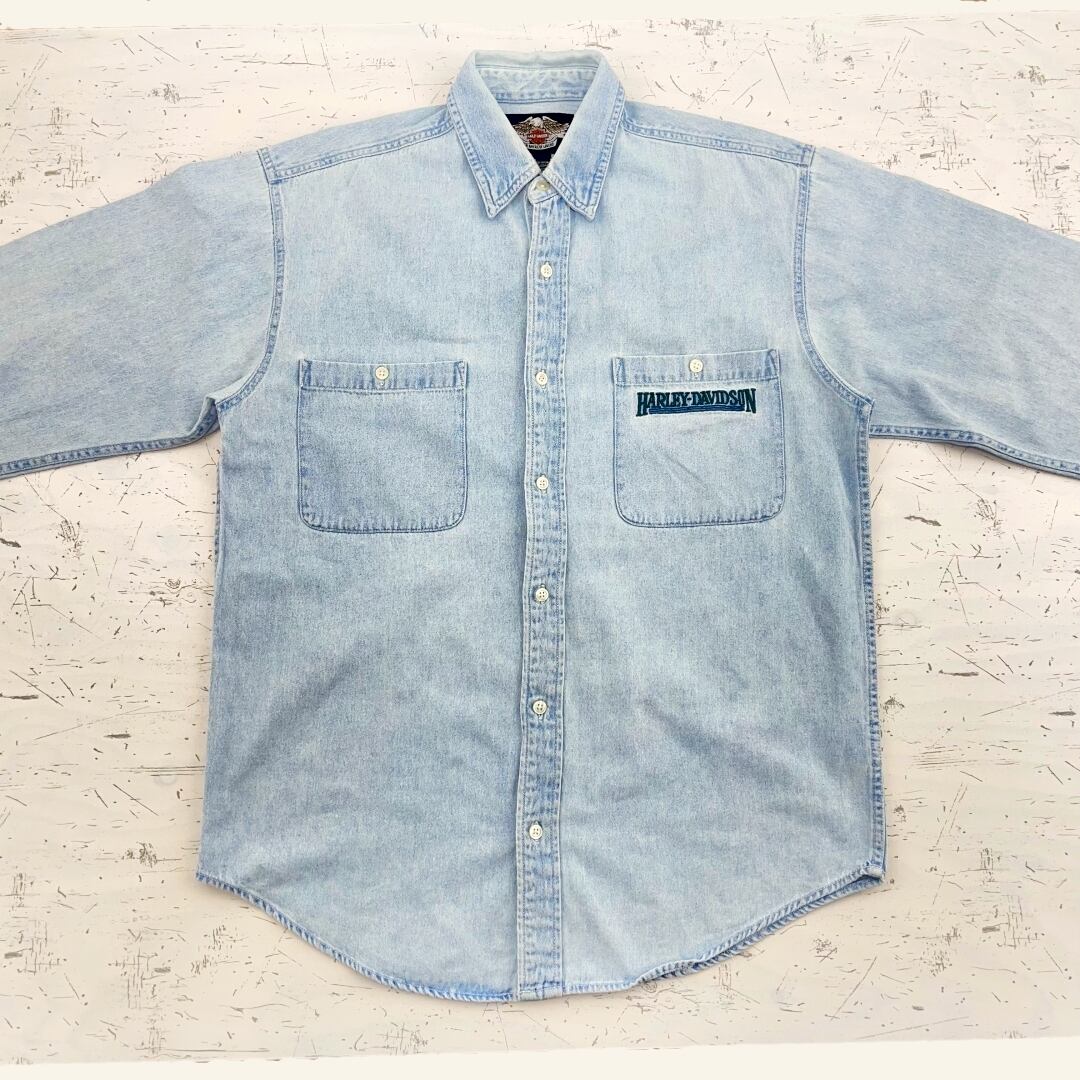 【US古着・00's】HARLEY-DAVIDSON ハーレーダビッドソン デニムシャツ メンズ サイズ表記M XL~2XL相当 ライトブルー
