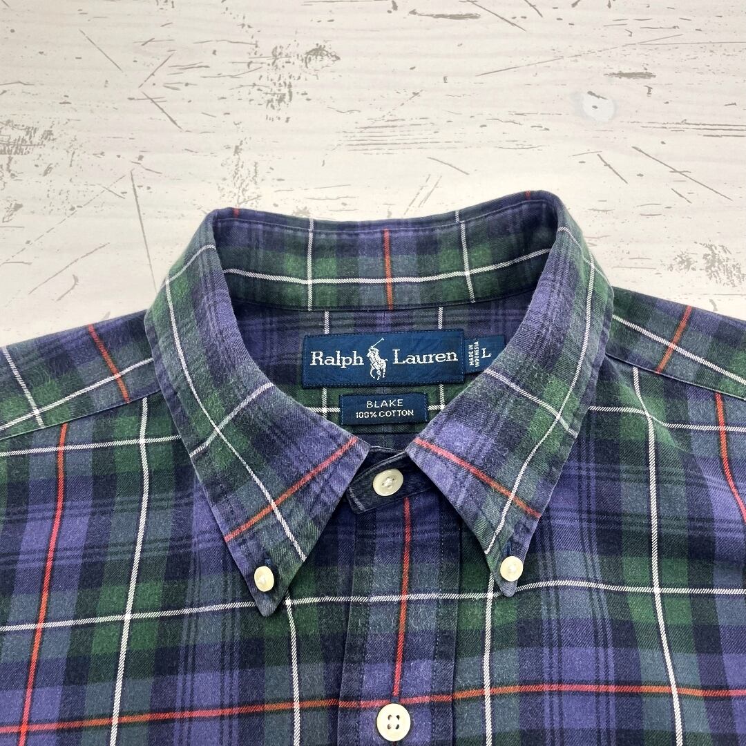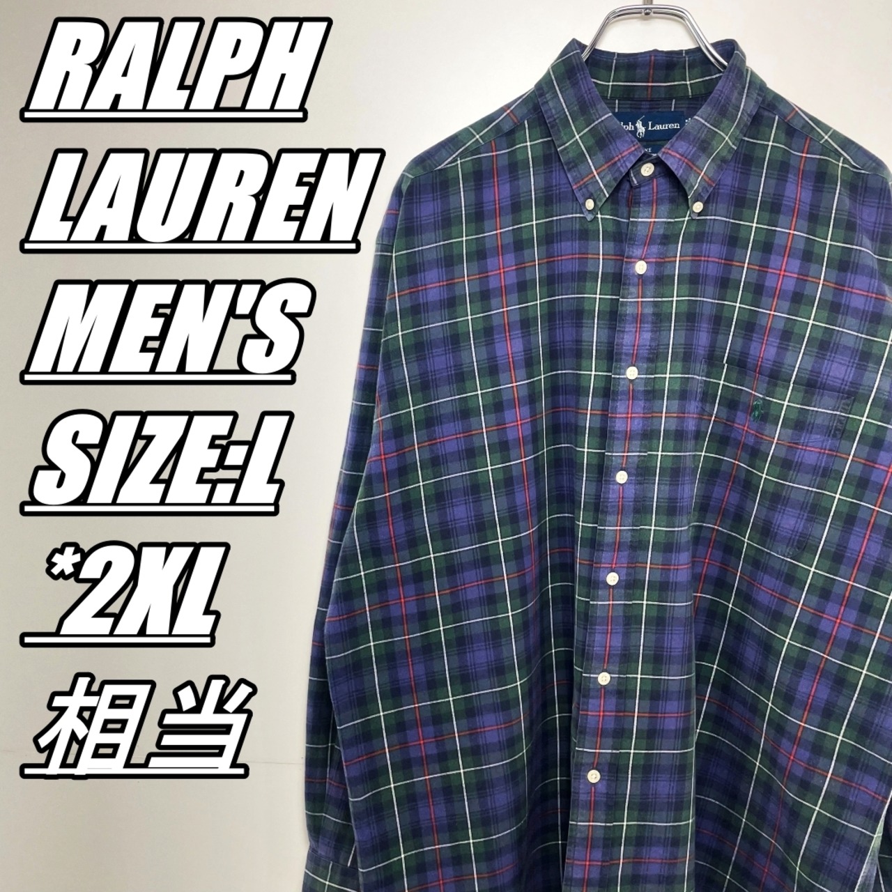 【US古着】RALPH LAUREN ラルフローレン BLAKE 長袖チェックシャツ メンズ サイズ表記L 2XL相当 グリーン×パープル×マルチカラー