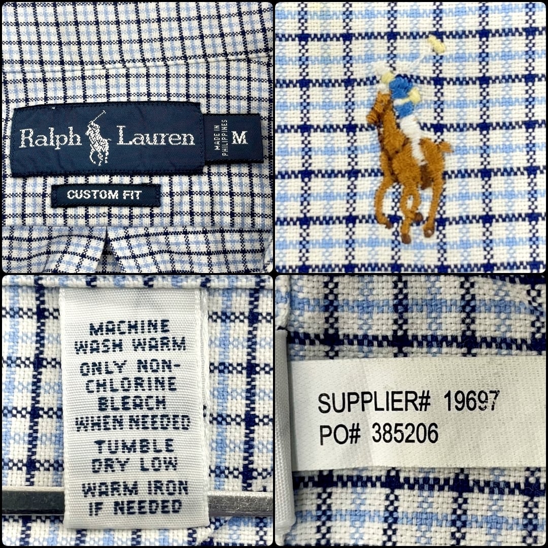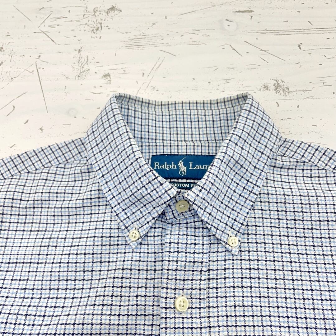 【US古着】RALPH LAUREN ラルフローレン CUSTOM FIT グラフチェック柄長袖BDシャツ メンズ サイズ表記M L~XL相当 ホワイト×ブルー×ブラック