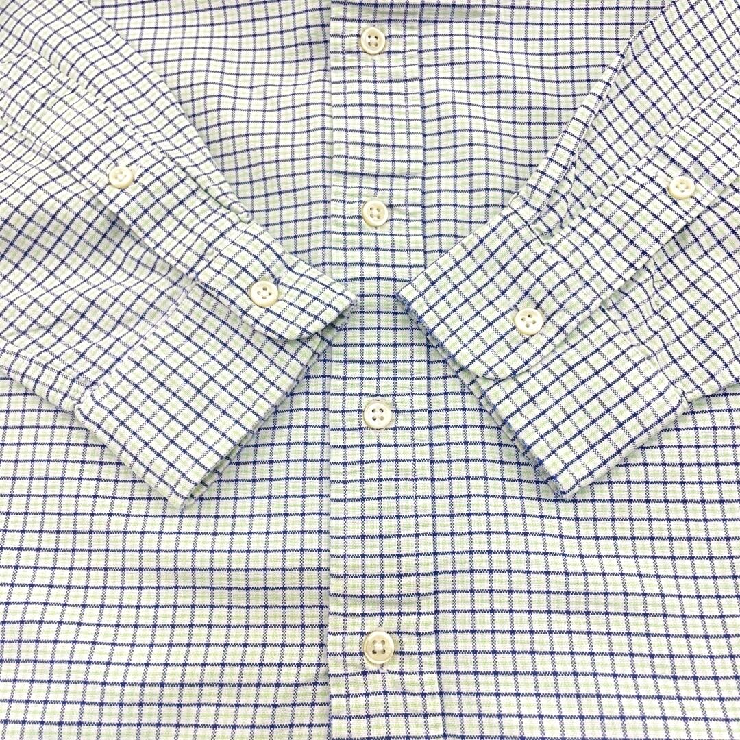 【US古着】RALPH LAUREN ラルフローレン CLASSIC FIT グラフチェック柄長袖シャツ メンズ サイズ表記S M~L相当 ホワイト×ネイビー×ライトグリーン