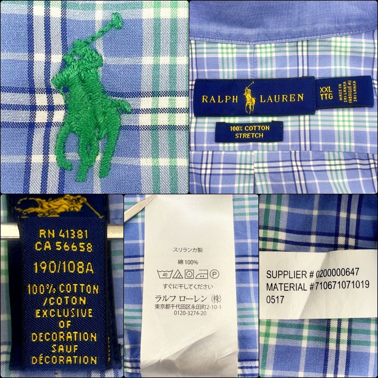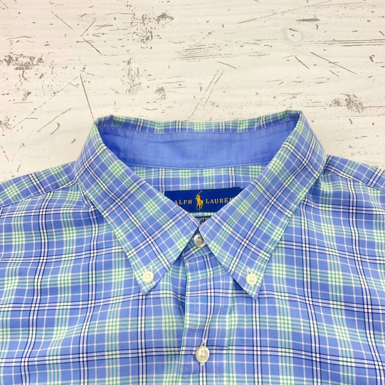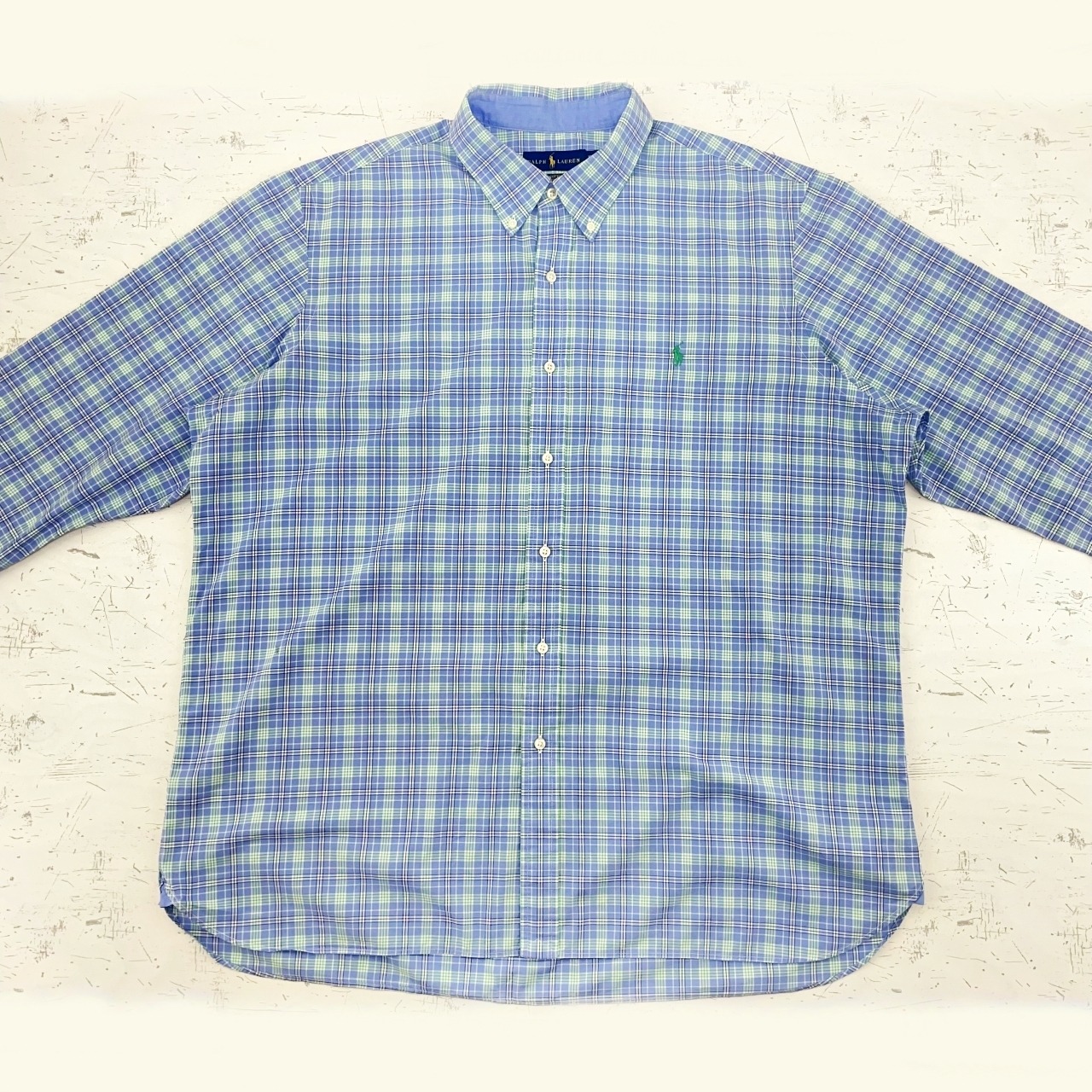 【US古着】RALPH LAUREN ラルフローレン チェック柄長袖シャツ メンズ サイズ表記XXL 2XL相当 ブルー系×グリーン