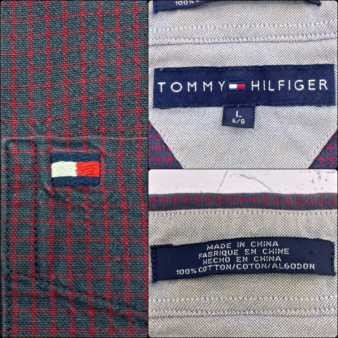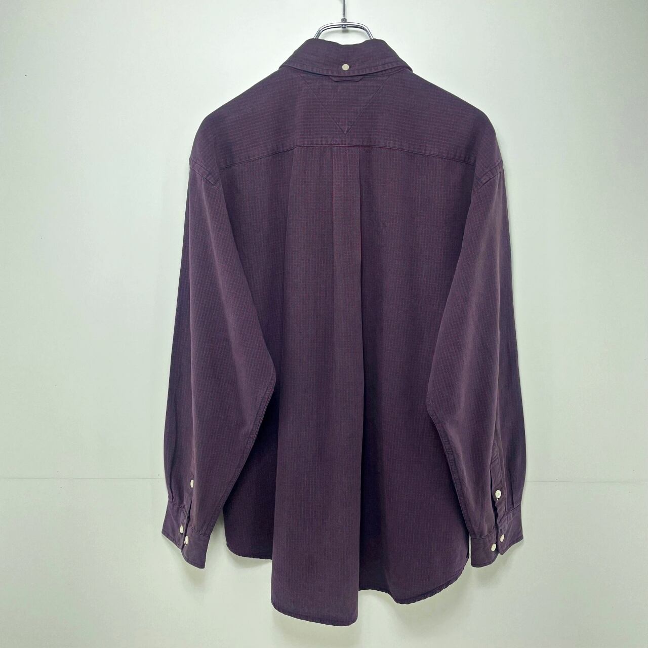 【US古着・90’s】TOMMY HILFIGER トミーヒルフィガー チェック柄長袖シャツ 厚手 メンズ サイズ表記L XL相当 ダークパープル×レッド