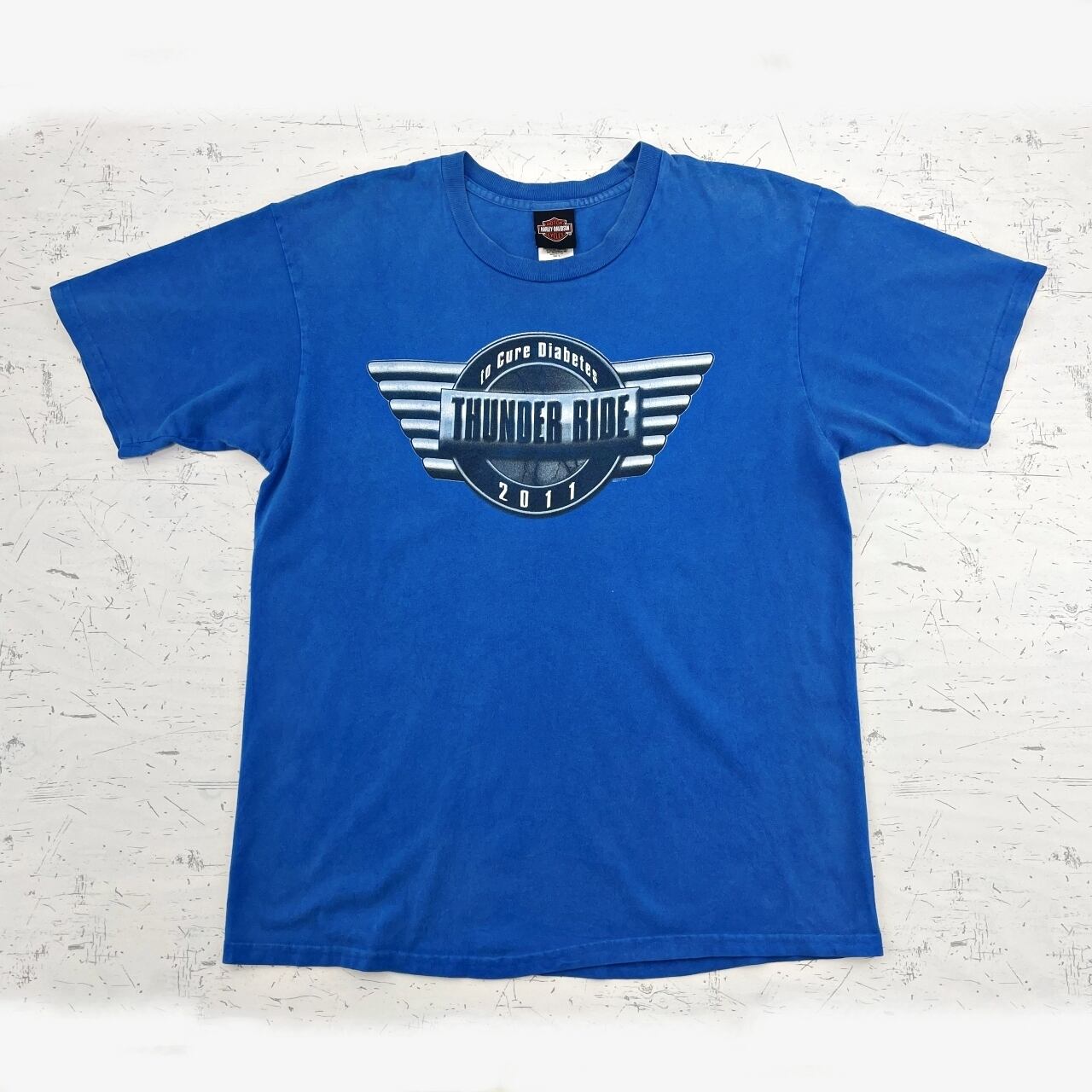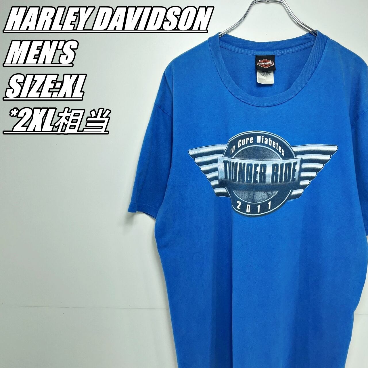 【US古着・11年】HARLEY DAVIDSON ハーレーダビッドソン プリントTシャツ メンズ サイズ表記XL 2XL相当 ブルー