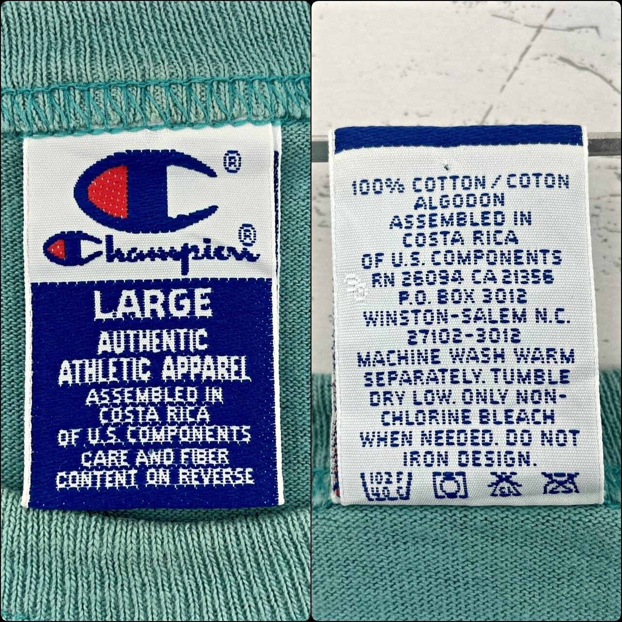 【US古着・90’s~00’s】Champion チャンピオン ワンポイントプリントTシャツ メンズ サイズ表記L XL相当 ターコイズブルー