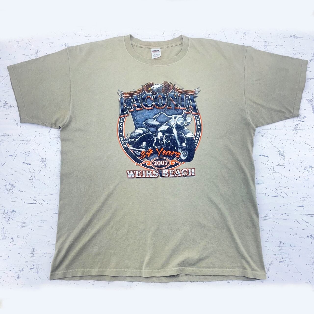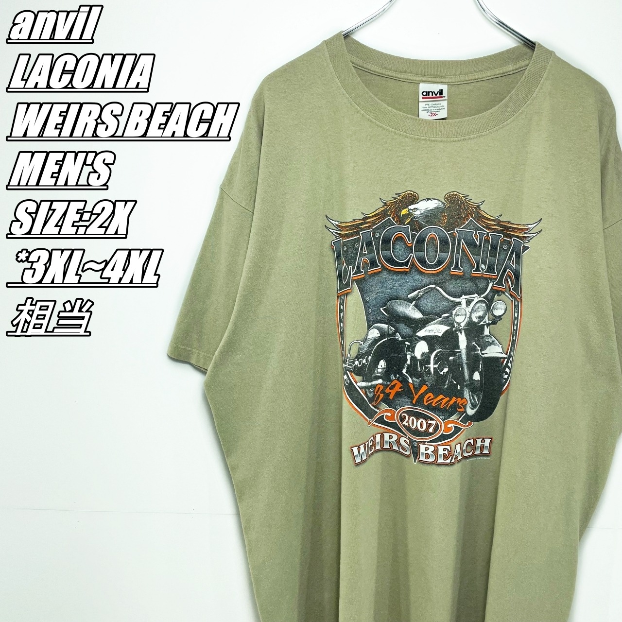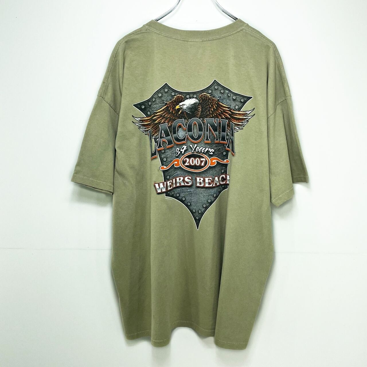 【US古着・06年】anvil アンビル LACONIA WEIRS BEACH プリントTシャツ メンズ サイズ表記2X 3XL~4XL相当 カーキ系