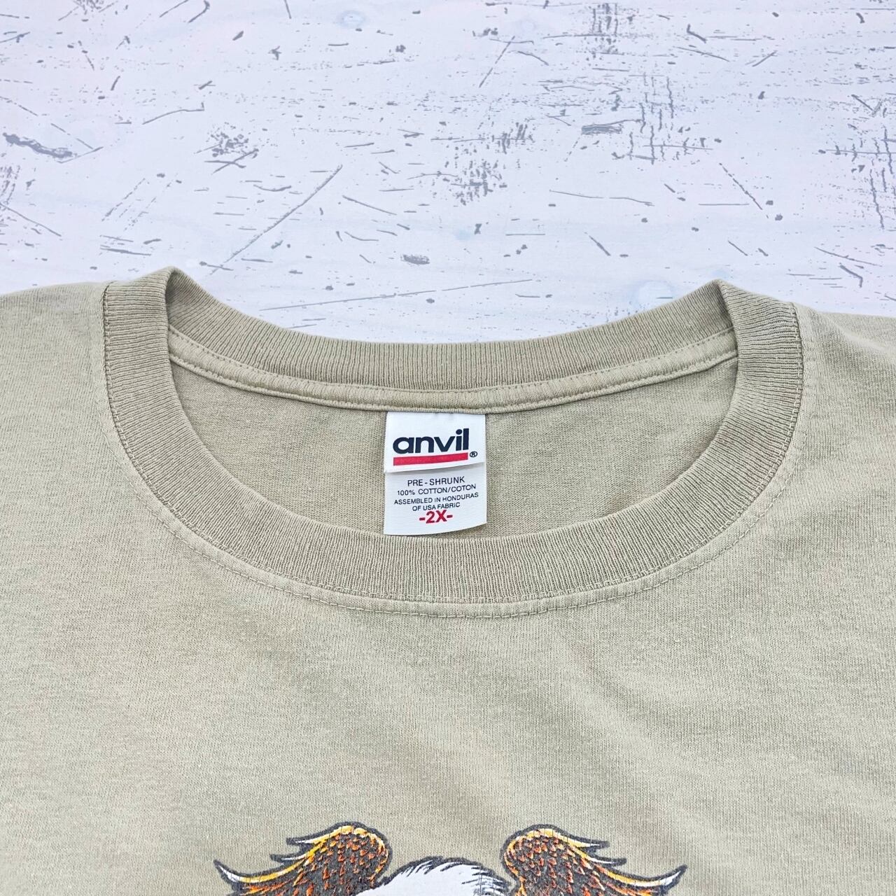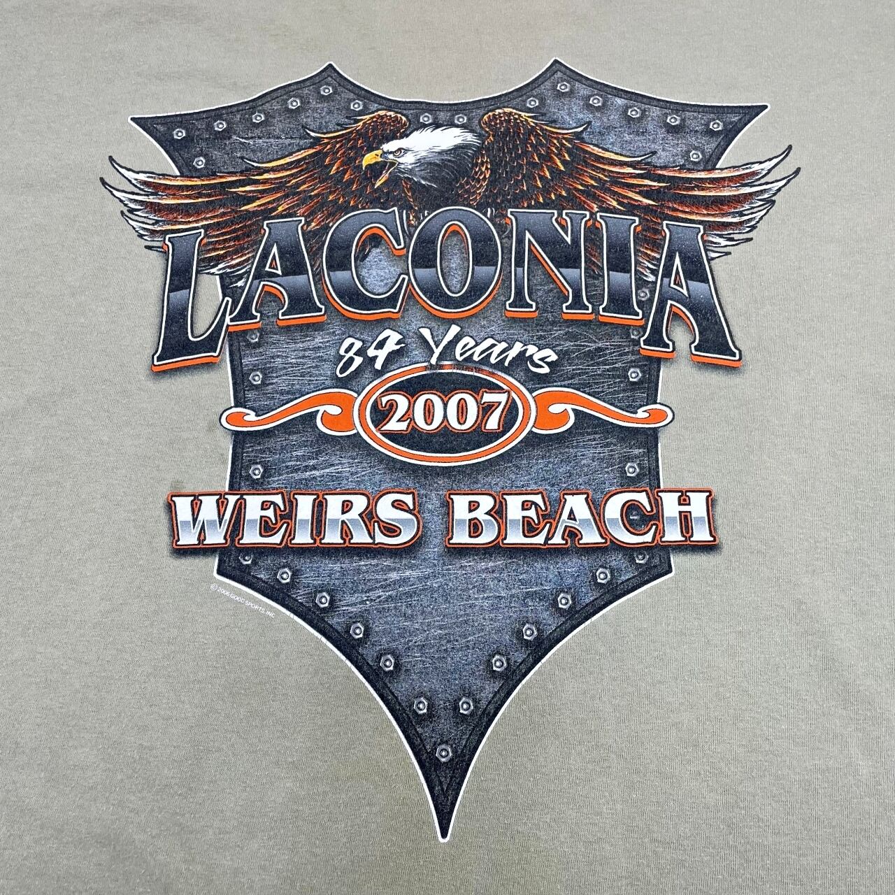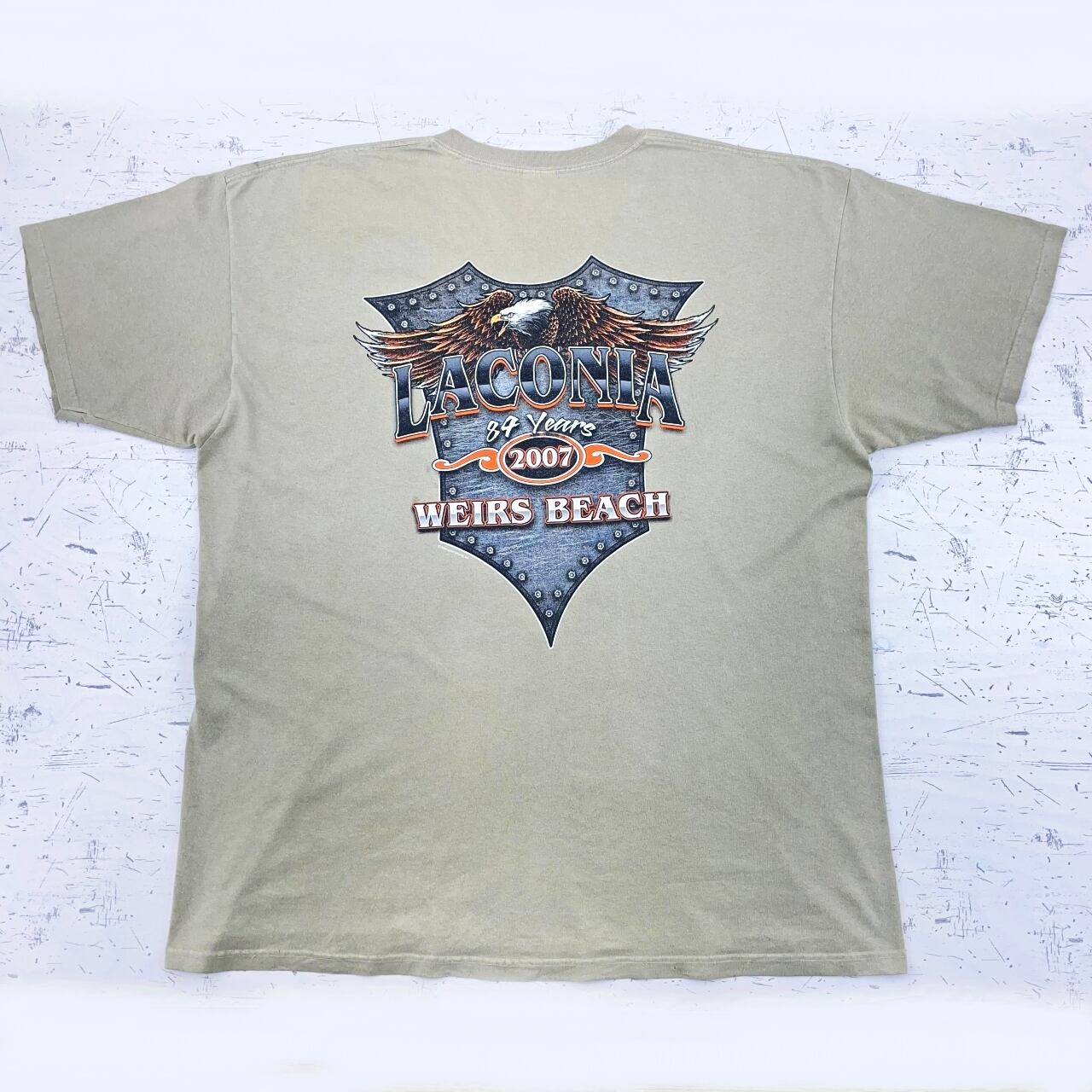 【US古着・06年】anvil アンビル LACONIA WEIRS BEACH プリントTシャツ メンズ サイズ表記2X 3XL~4XL相当 カーキ系