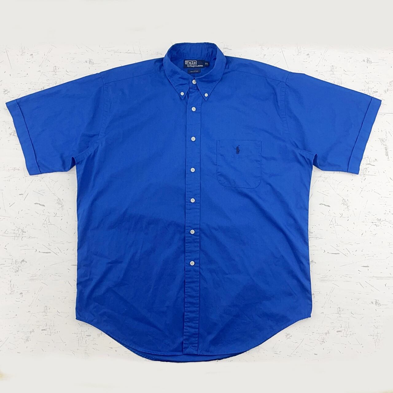 【US古着・90’s】POLO RALPH LAUREN ポロラルフローレン ワンポイント刺?半袖シャツ メンズ サイズ表記XXL 2XL~3XL相当 ブルー