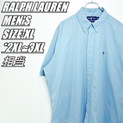 【US古着・90’s~】RALPH LAUREN ラルフローレン BLAKE ワンポイント刺?半袖シャツ メンズ サイズ表記XL 2XL~3XL相当 ライトブルー