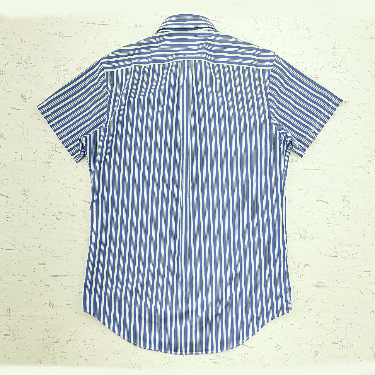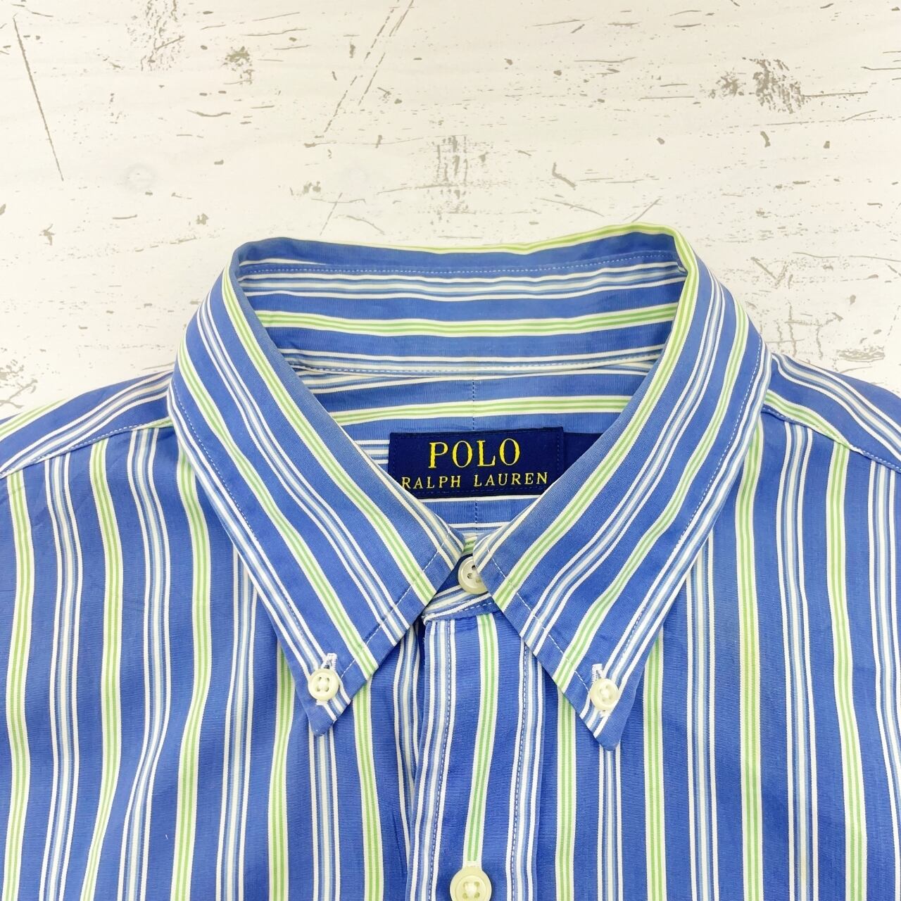 【US古着】POLO RALPH LAUREN ポロラルフローレン 半袖ストライプシャツ メンズ サイズ表記 S M~L相当 ネイビー×ライトグリーン×ホワイト