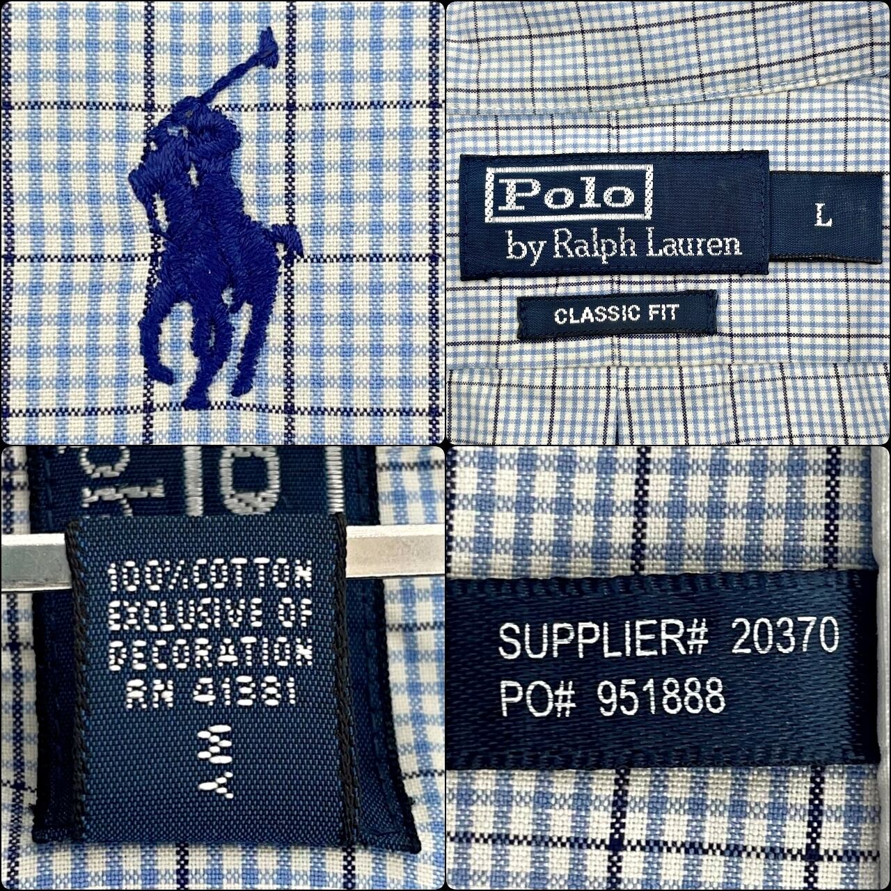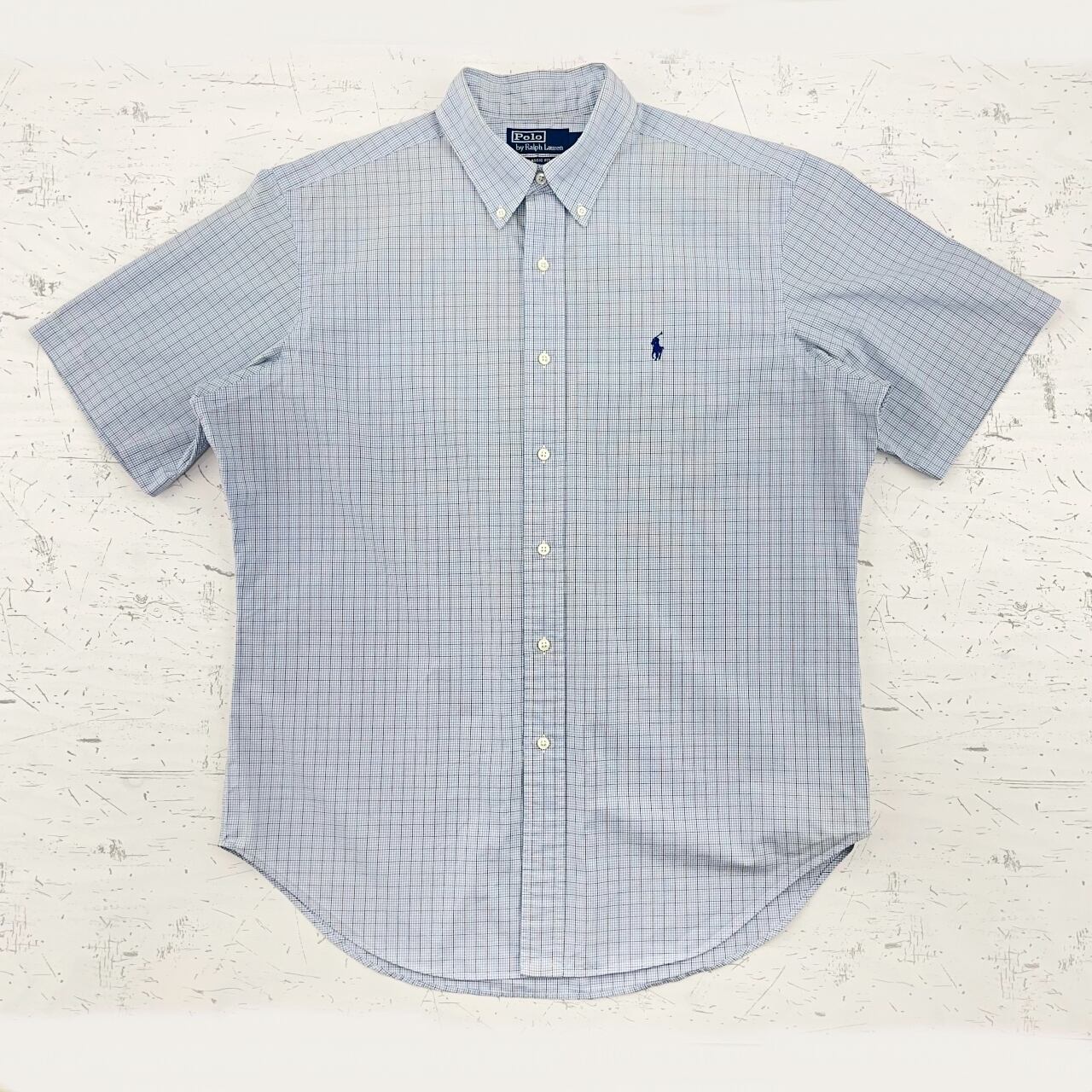 【US古着・00’s~】POLO RALPH LAUREN ポロラルフローレン CLASSIC FIT 半袖チェックシャツ メンズ サイズ表記L L~XL相当 ライトブルー×ホワイト×ブラック