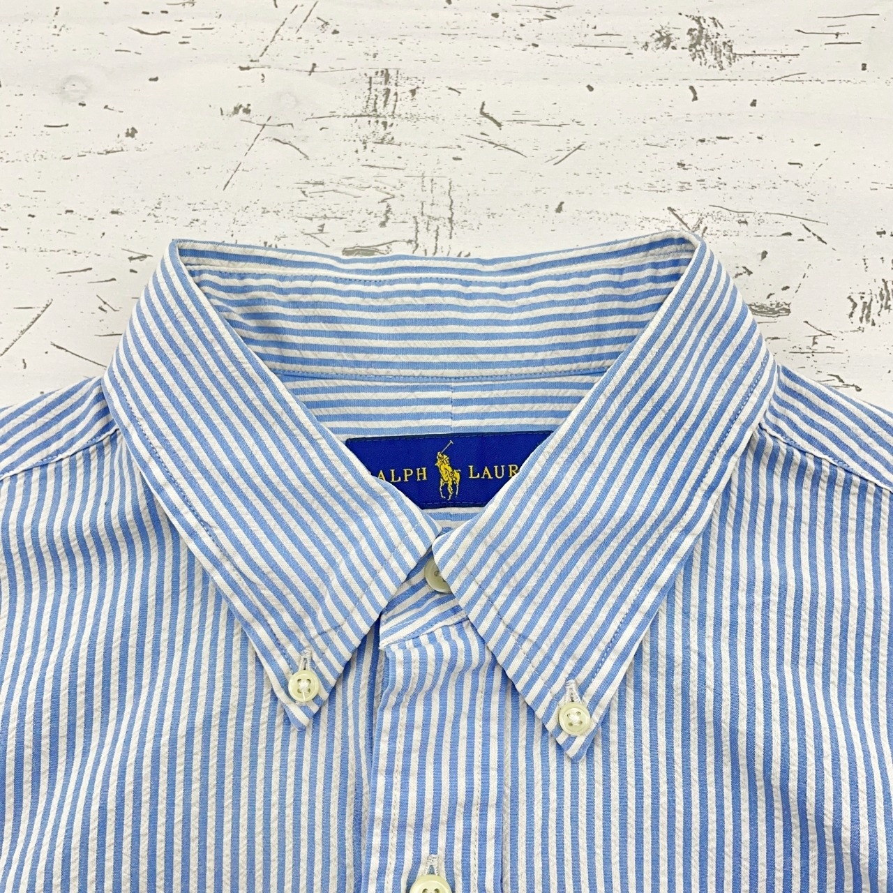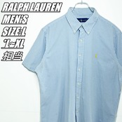 【US古着・00’s~】RALPH LAUREN ラルフローレン 半袖ストライプシャツ メンズ サイズ表記L L~XL相当 ライトブルー×ホワイト