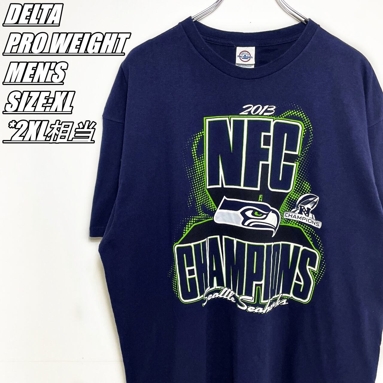 【US古着】DELTA PRO WEIGHT デルタ プロウェイト NFL シアトルシーホークス プリントTシャツ メンズ サイズ表記XL 2XL相当 ネイビー