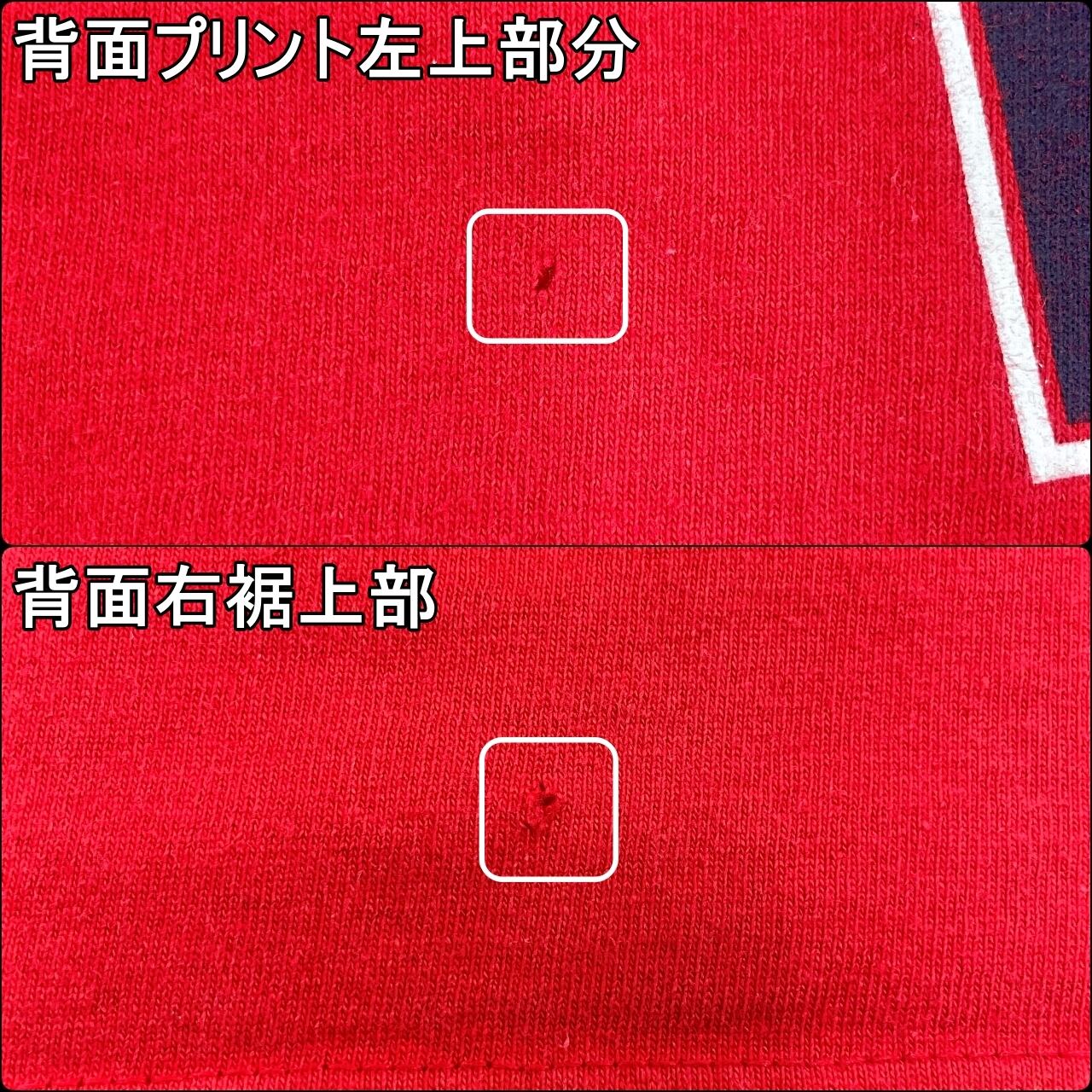 ●画像6枚目上部の通り背面プリント左上部分に穴あきが御座います。