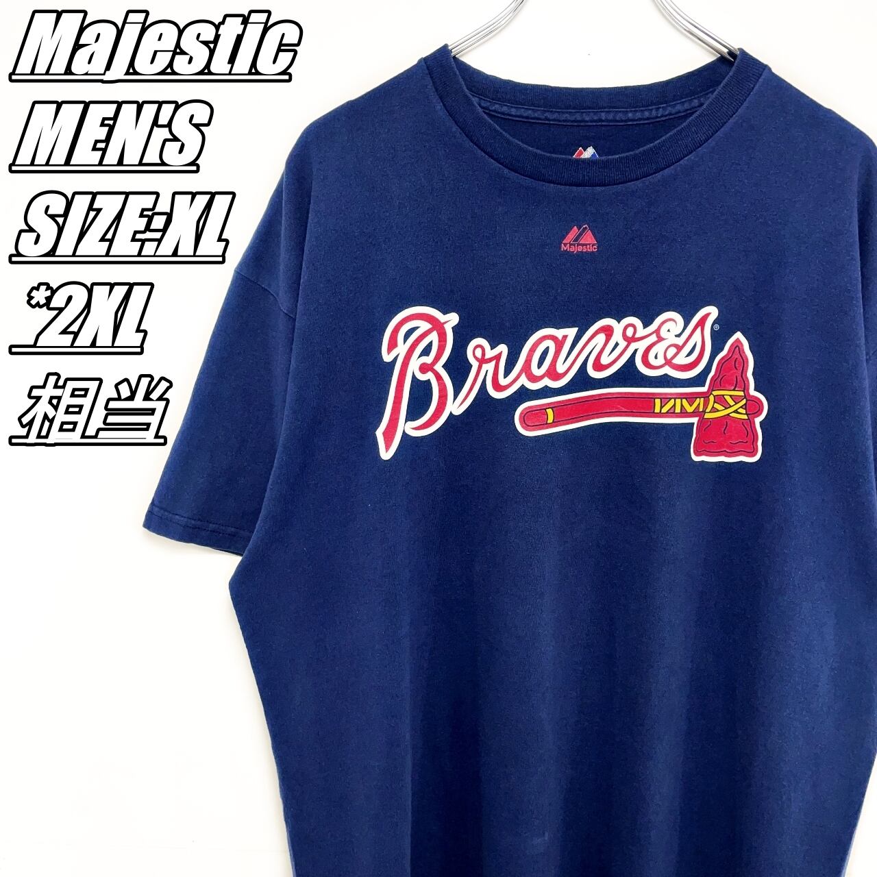 【US古着】Majestic マジェスティック MLB アトランタブレーブルス プリントTシャツ メンズ サイズ表記XL 2XL相当 ネイビー