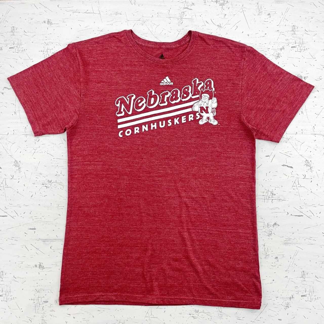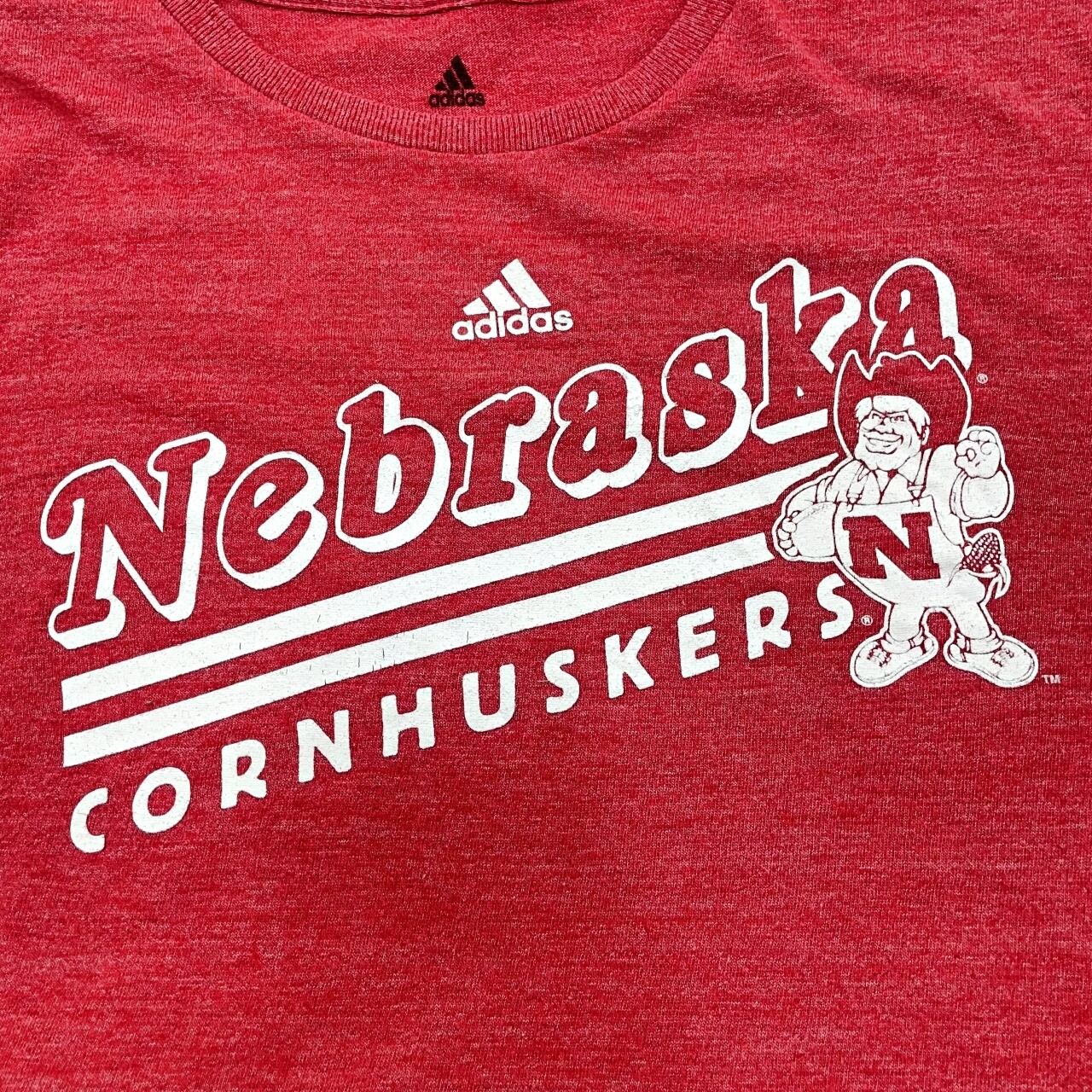 【US古着】adidas アディダス ネブラスカ大学 NEBRASKA CORNHUSKERS プリントTシャツ メンズ サイズ表記2XO 2XL相当 レッド