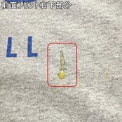 ●画像6枚目の通り前面プリント右部分にボンドが固まったようなダメージが御座います。