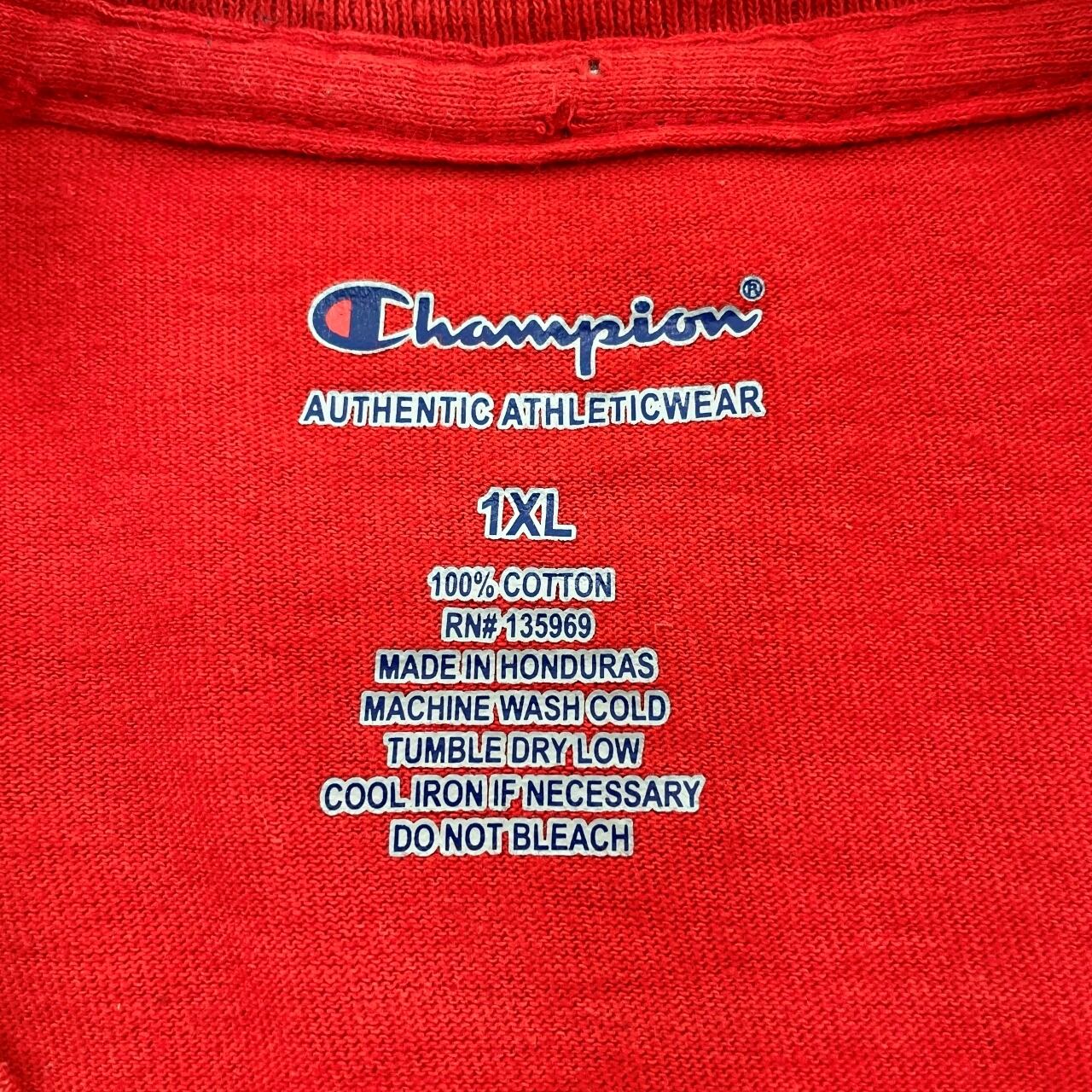 【US古着】Champion チャンピオン ロゴプリントTシャツ メンズ サイズ表記1XL 2XL~3XL相当 レッド