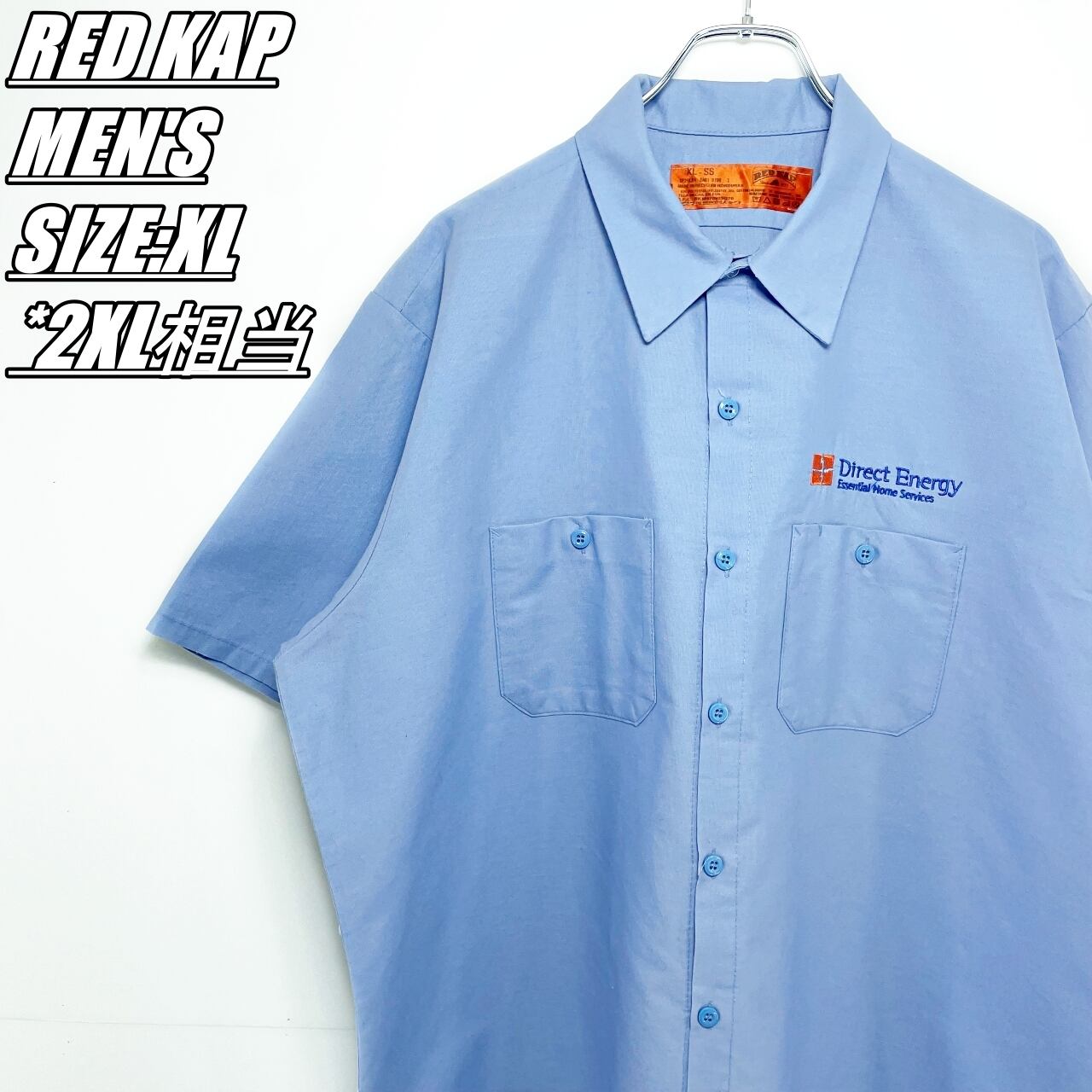 【US古着】RED KAP レッドキャップ 企業ロゴ刺? 半袖ワークシャツ メンズ サイズ表記XL 2XL相当 ライトブルー