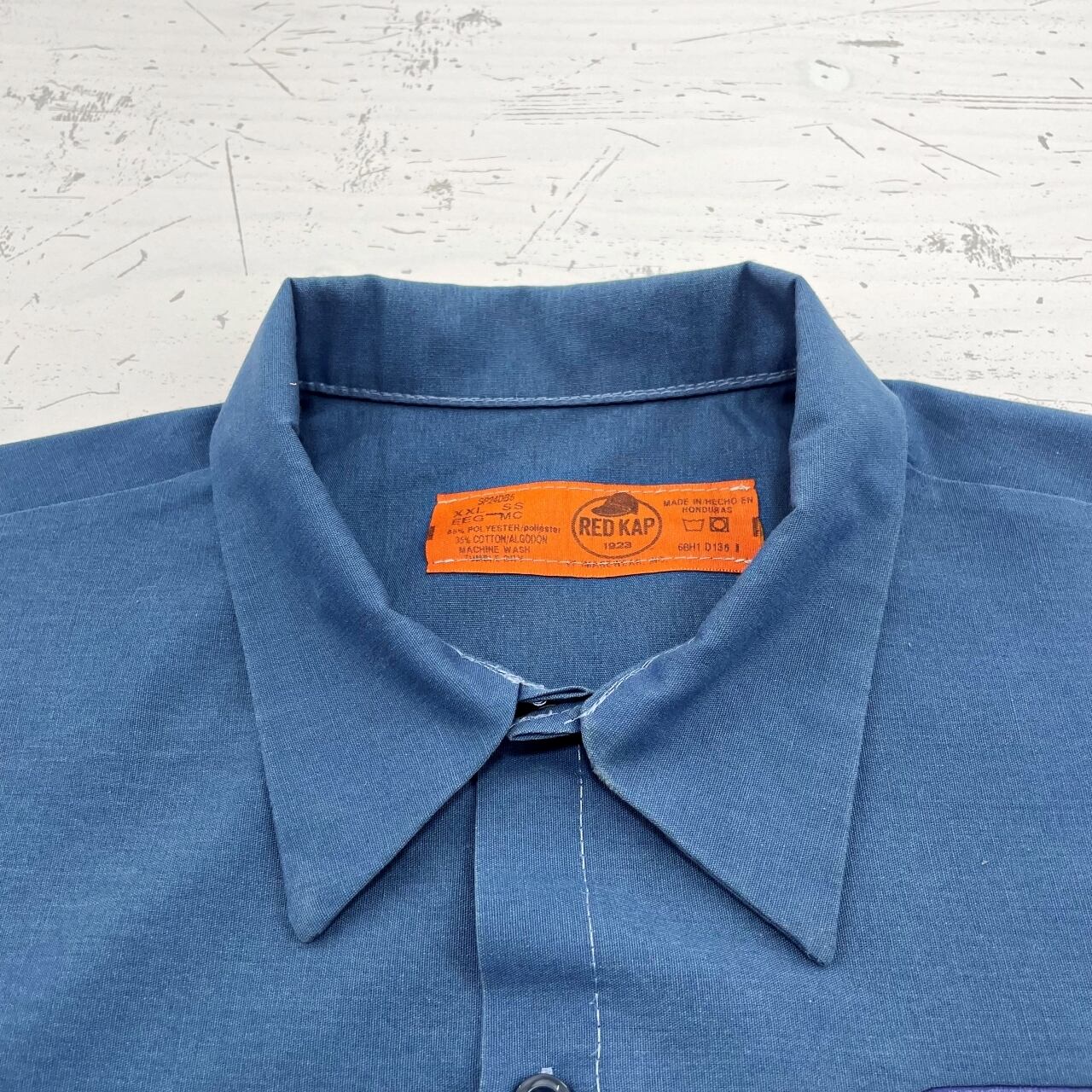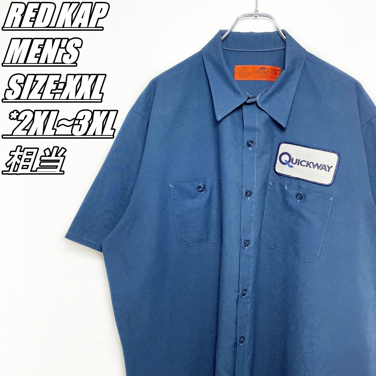 【US古着】RED KAP レッドキャップ 企業ロゴワッペン 半袖ワークシャツ メンズ サイズ表記XXL 2XL~3XL相当 ネイビー系
