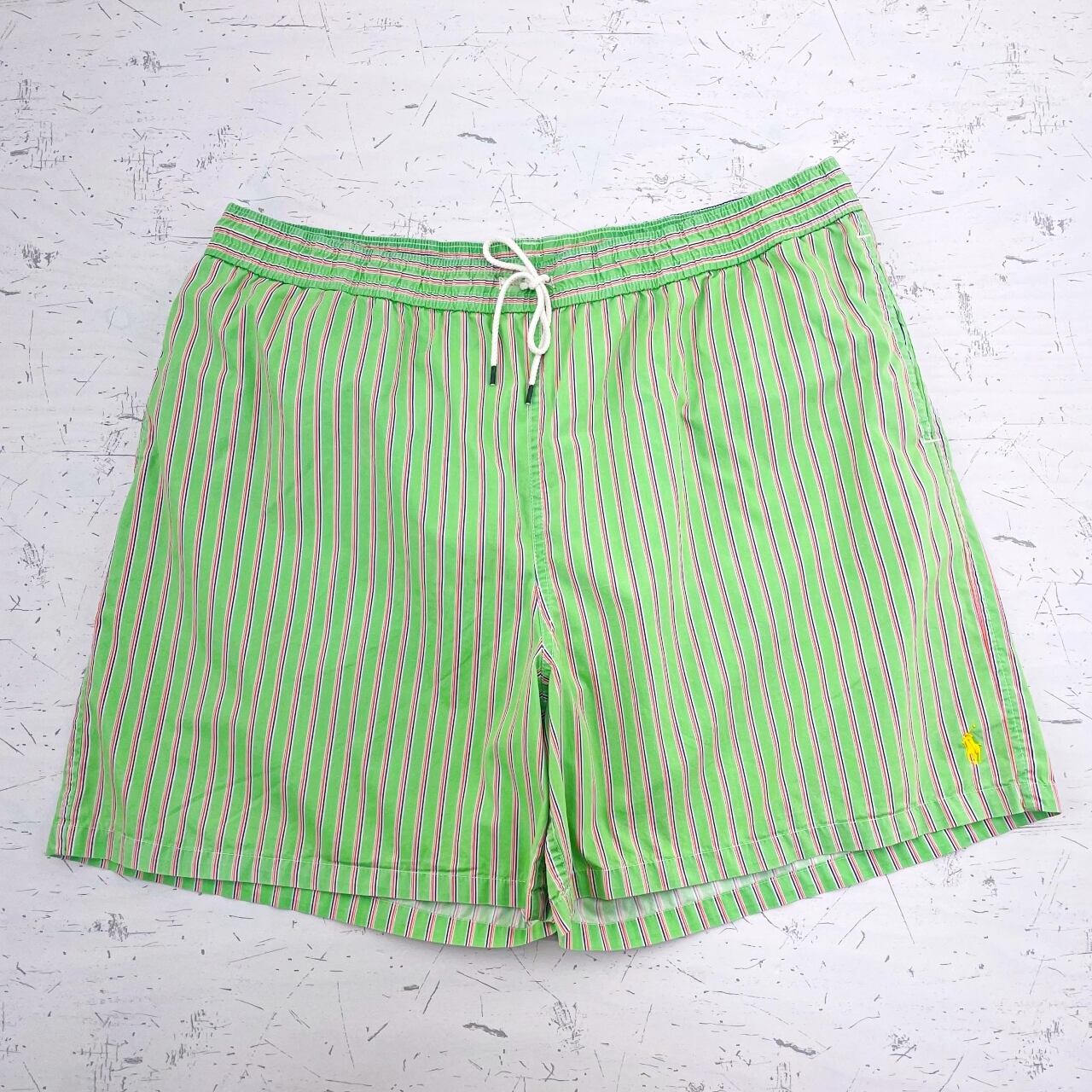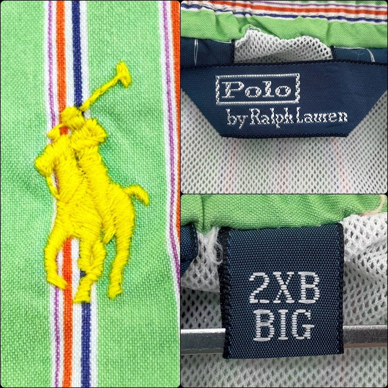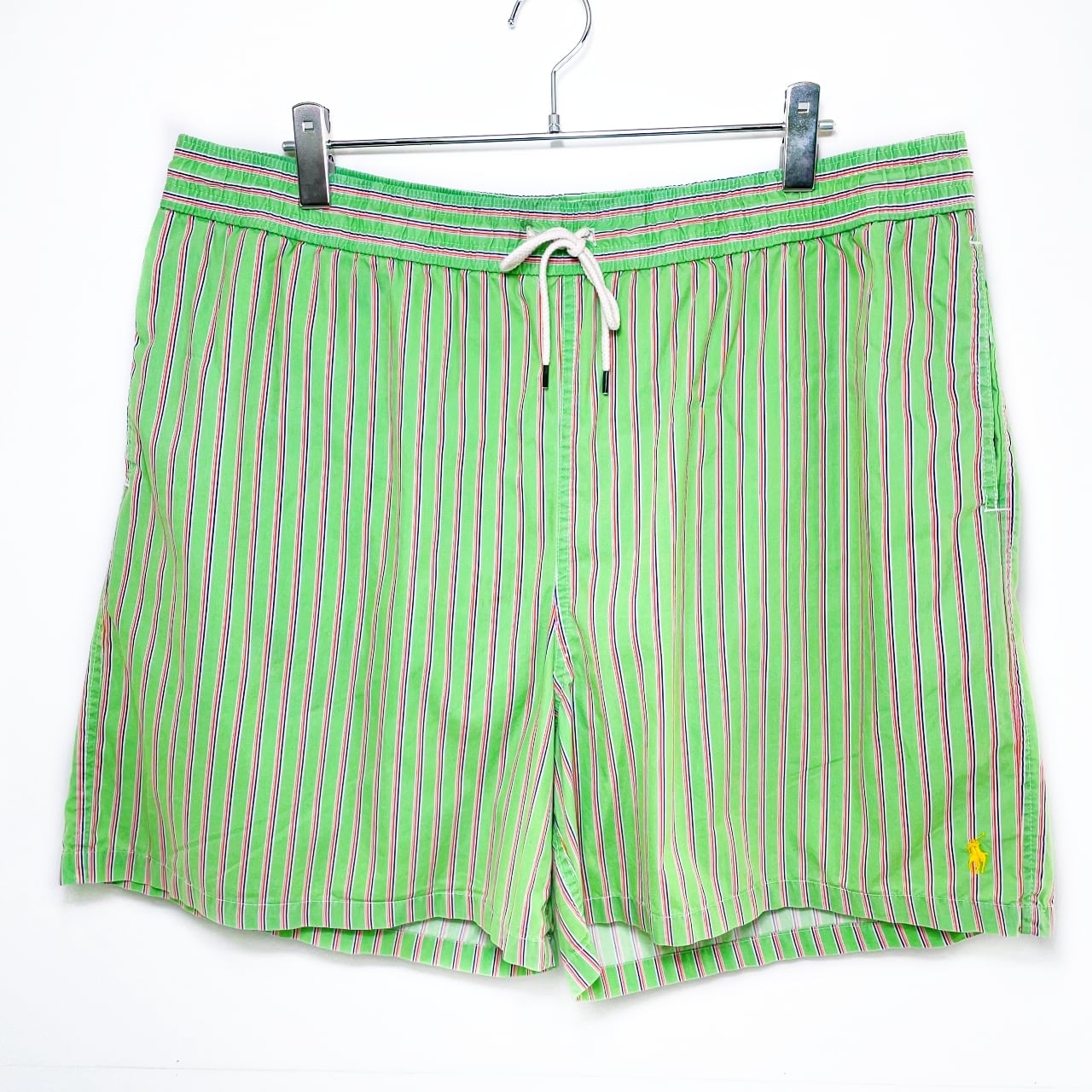 【US古着】POLO RALPH LAUREN ポロラルフローレン ストライプ柄 ショートパンツ メンズ サイズ表記2XB BIG 3XL相当 ライムグリーン×マルチカラー