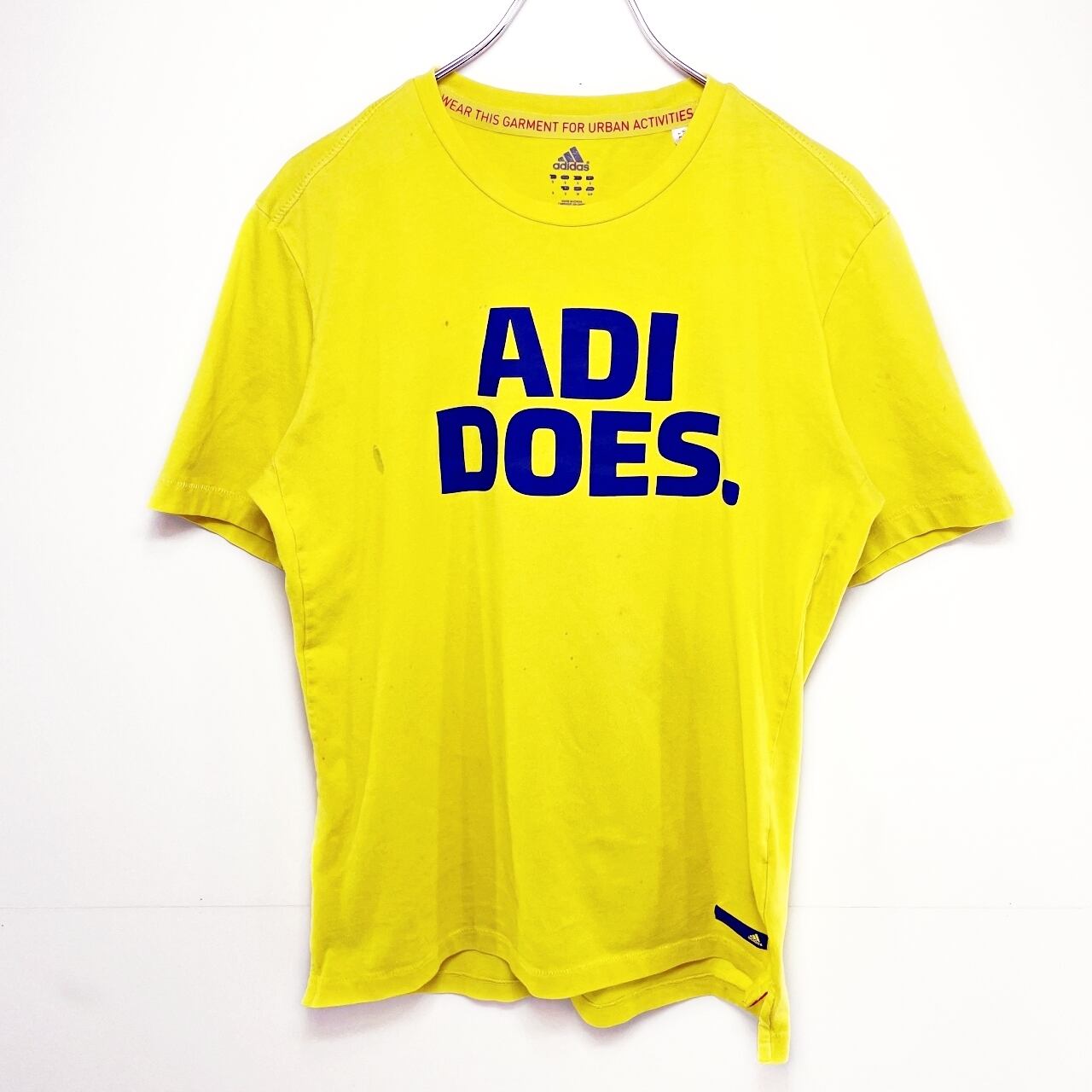 【US古着】adidas アディダス プリントTシャツ メンズ サイズ表記S M相当 イエロー×ネイビー