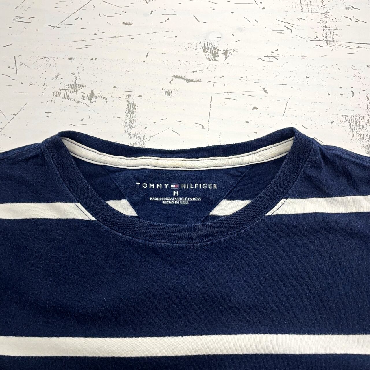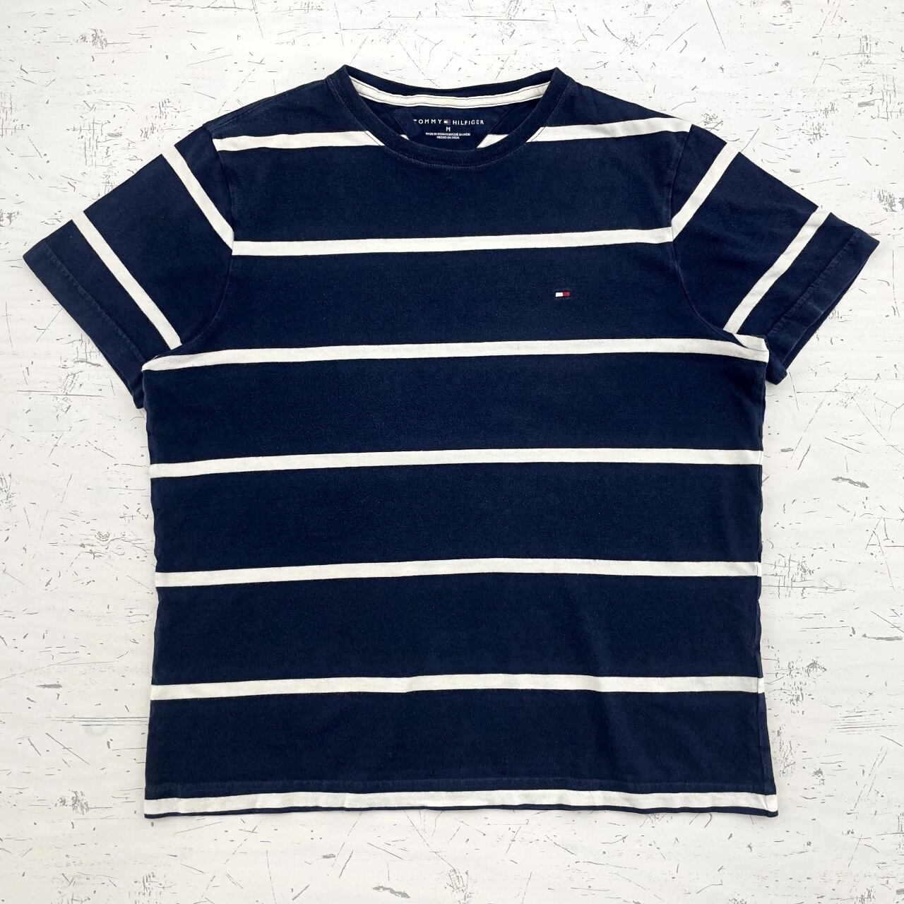 【US古着】TOMMY HILFIGER トミーヒルフィガー ボーダー柄Tシャツ メンズ サイズ表記M ネイビー×ホワイト