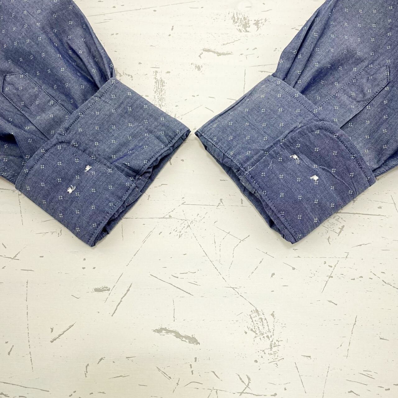 TOMMY HILFIGER トミーヒルフィガー 総柄長袖シャツ メンズ サイズ表記L 16-16 1/2 32-33 XL相当 ネイビー