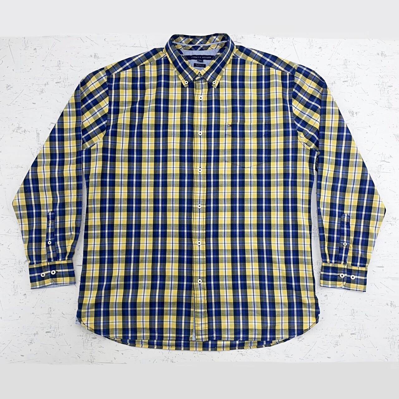 TOMMY HILFIGER トミーヒルフィガー チェック柄長袖シャツ メンズ サイズ表記XL 2XL相当 イエロー×ネイビー×ホワイト