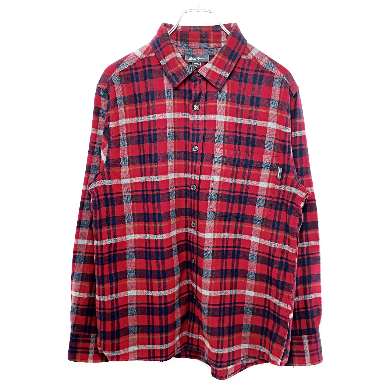 Eddie Bauer エディーバウアー チェック柄フランネルシャツ ネルシャツ メンズ サイズ表記M L相当 レッド系マルチカラー