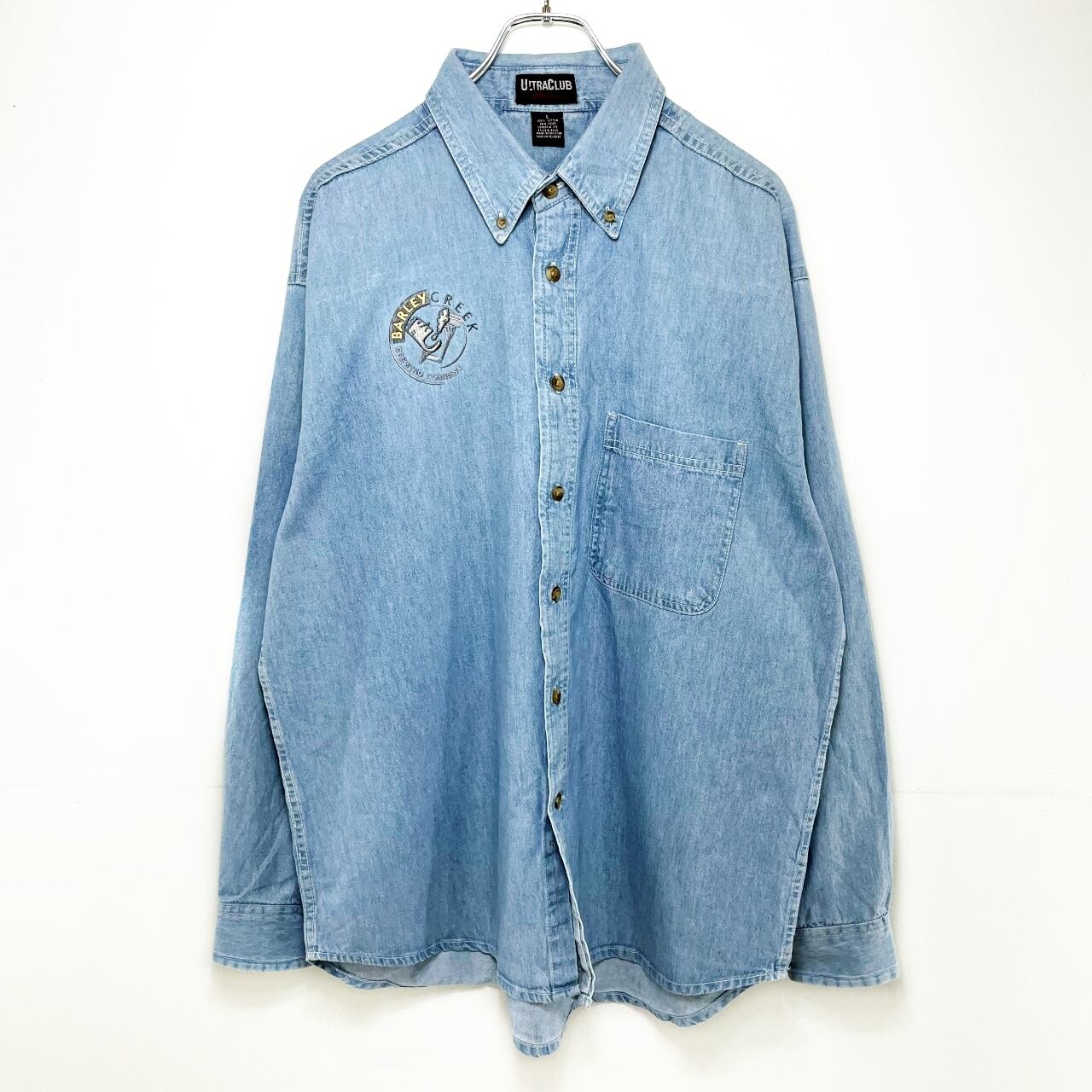 【90’s】ULTRA CLUB ウルトラクラブ ロゴ刺?デニムシャツ メンズ サイズ表記L 2XL相当 ライトインディゴ