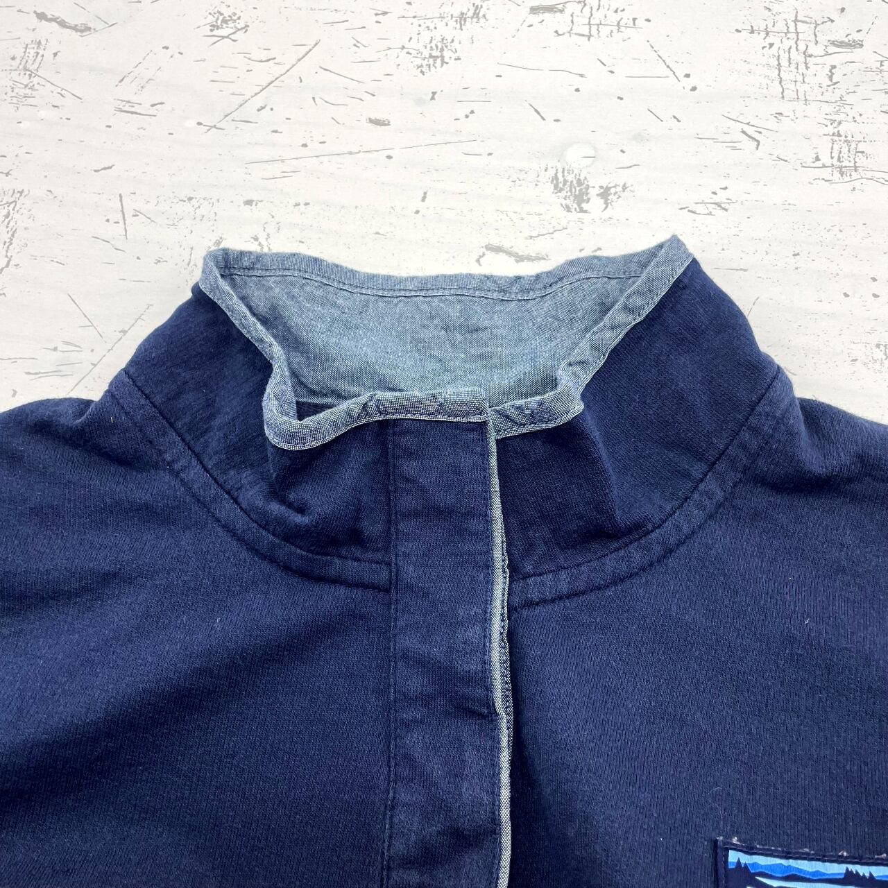 L.L.Bean エルエルビーン ハイネックロンT胸元ボタン メンズ サイズ表記L L~XL相当 ネイビー×マルチカラー