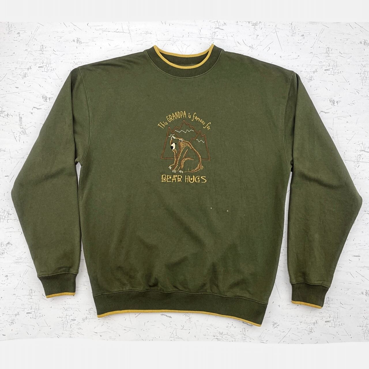 【ヴィンテージ】M&C SPORTS エム&シースポーツ ヴィンテージ刺?デザイントレーナー メンズ サイズ表記L 2XL相当 オリーブグリーン系×イエロー