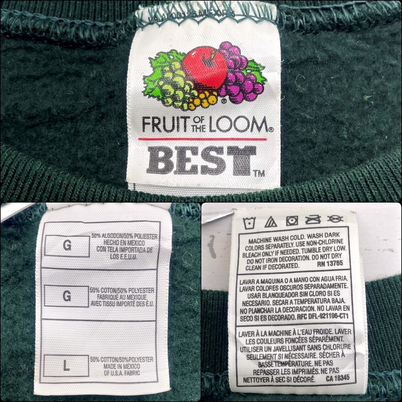 FRUIT OF THE LOOM フルーツオブザルーム ワンポイント刺繍スウェット トレーナー メンズ サイズ表記L XL相当 ダークグリーン