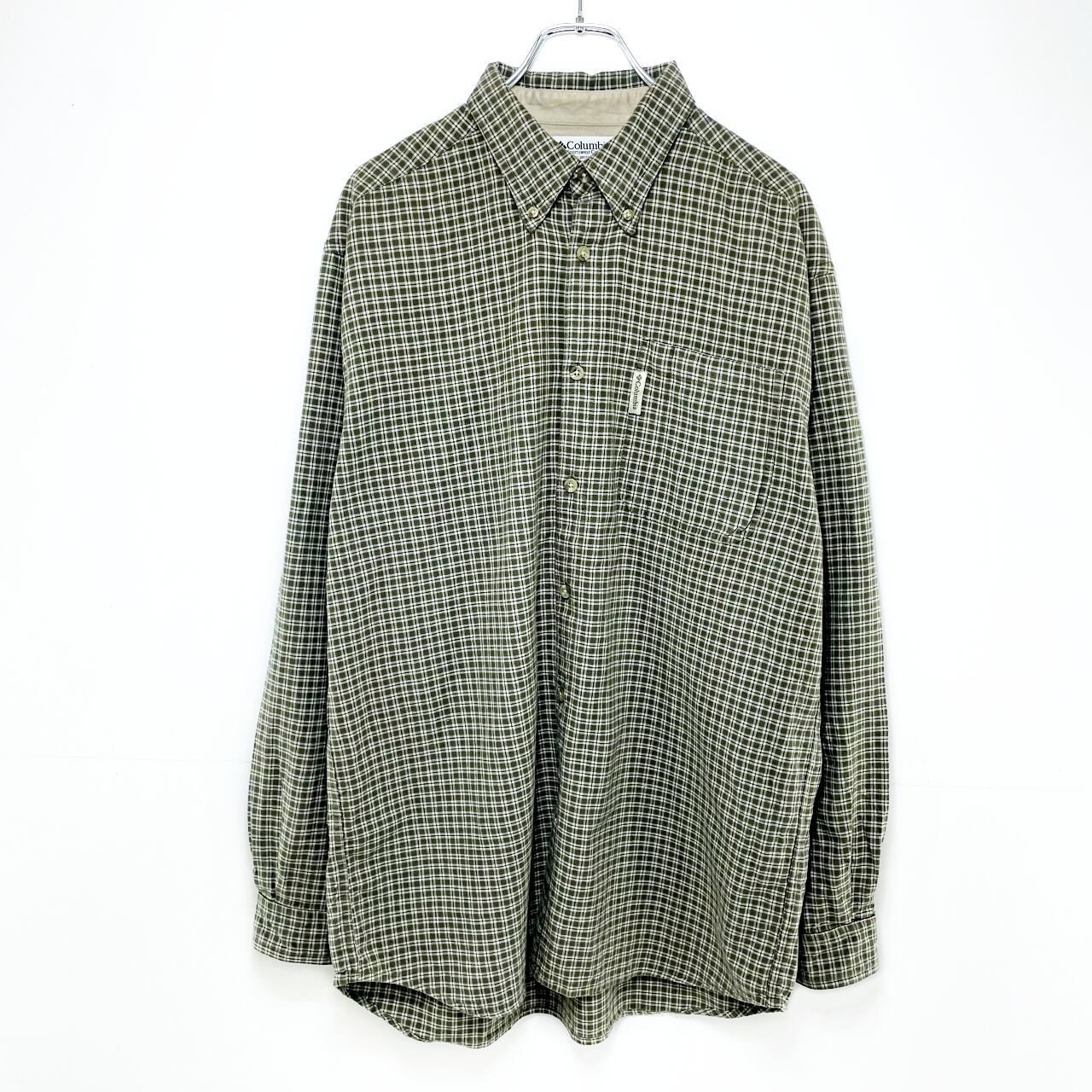 Columbia コロンビア チェック柄長袖アウトドアシャツ メンズ サイズ表記L XL相当 オリーブグリーン系