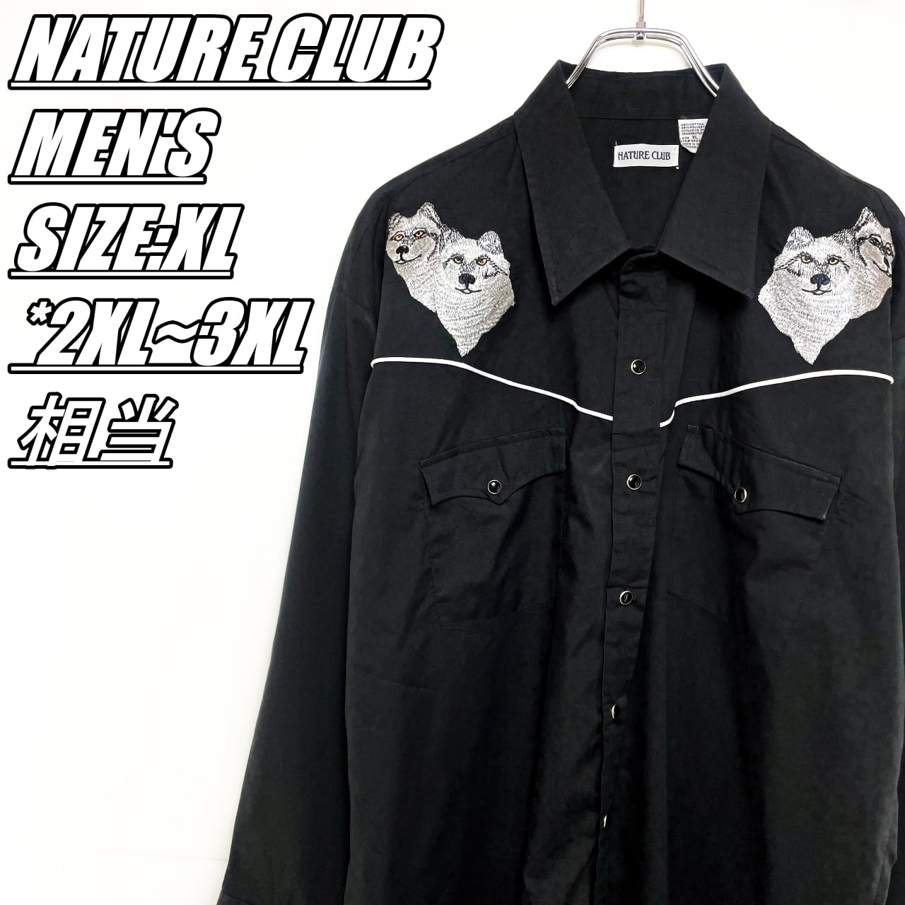 NATURE CLUB ネイチャークラブ オオカミ刺? ウエスタンシャツ メンズ サイズ表記XL 2XL~3XL相当 ブラック