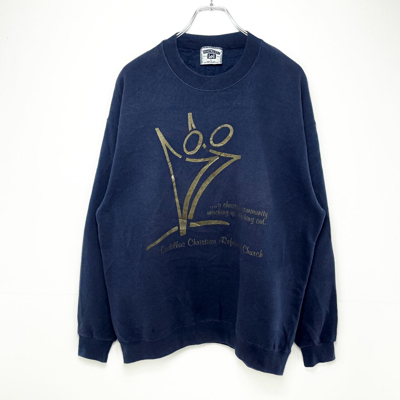 Lee リー プリント スウェット トレーナー ユニセックス 男女兼用 サイズ表記L メンズXL相当 ネイビー