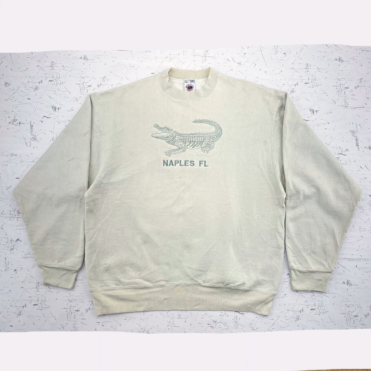 FRUIT OF THE LOOM フルーツオブザルーム フロリダ州ネープルズ 刺?スウェット トレーナー ユニセックス 男女兼用 サイズ表記L メンズ2XL相当 アイボリー