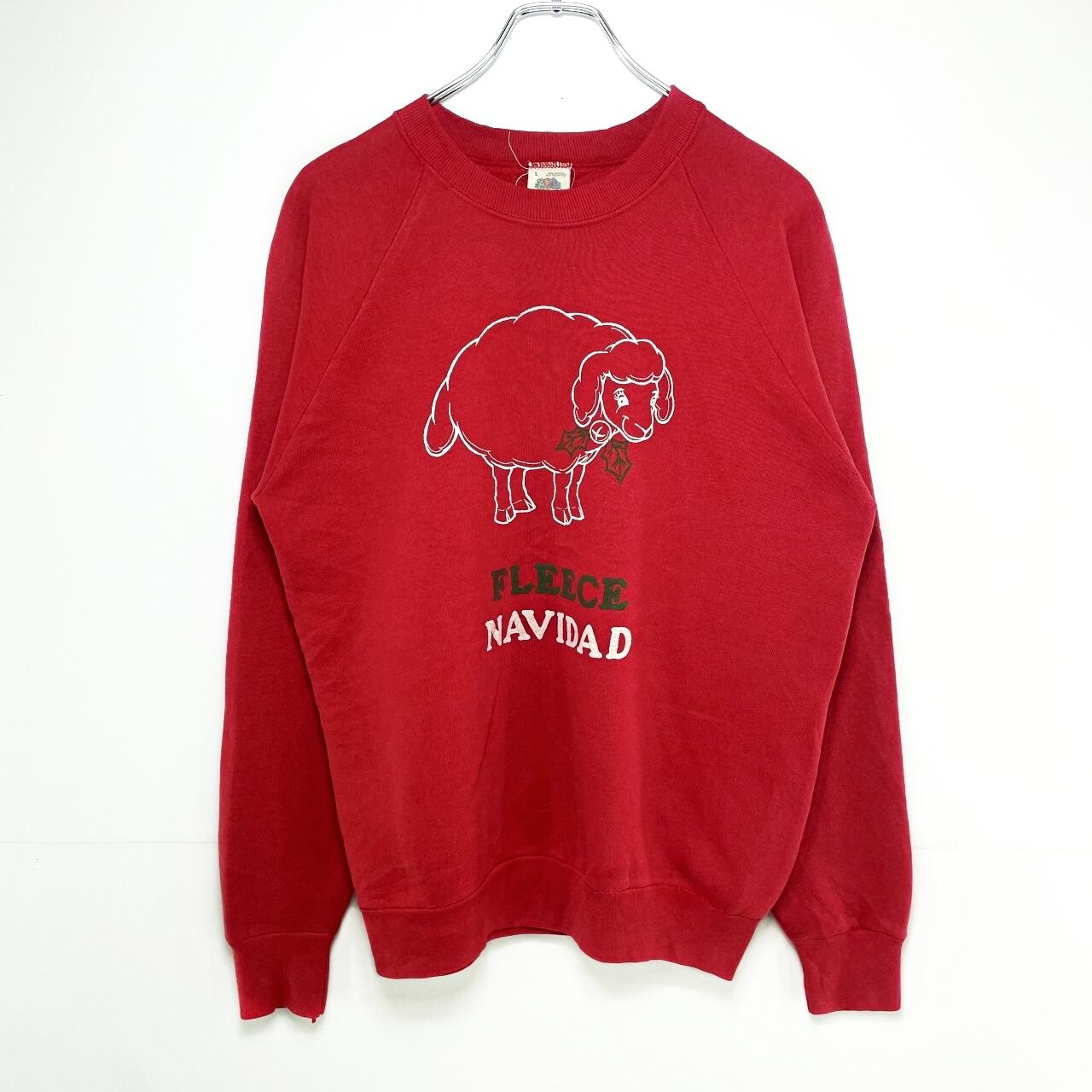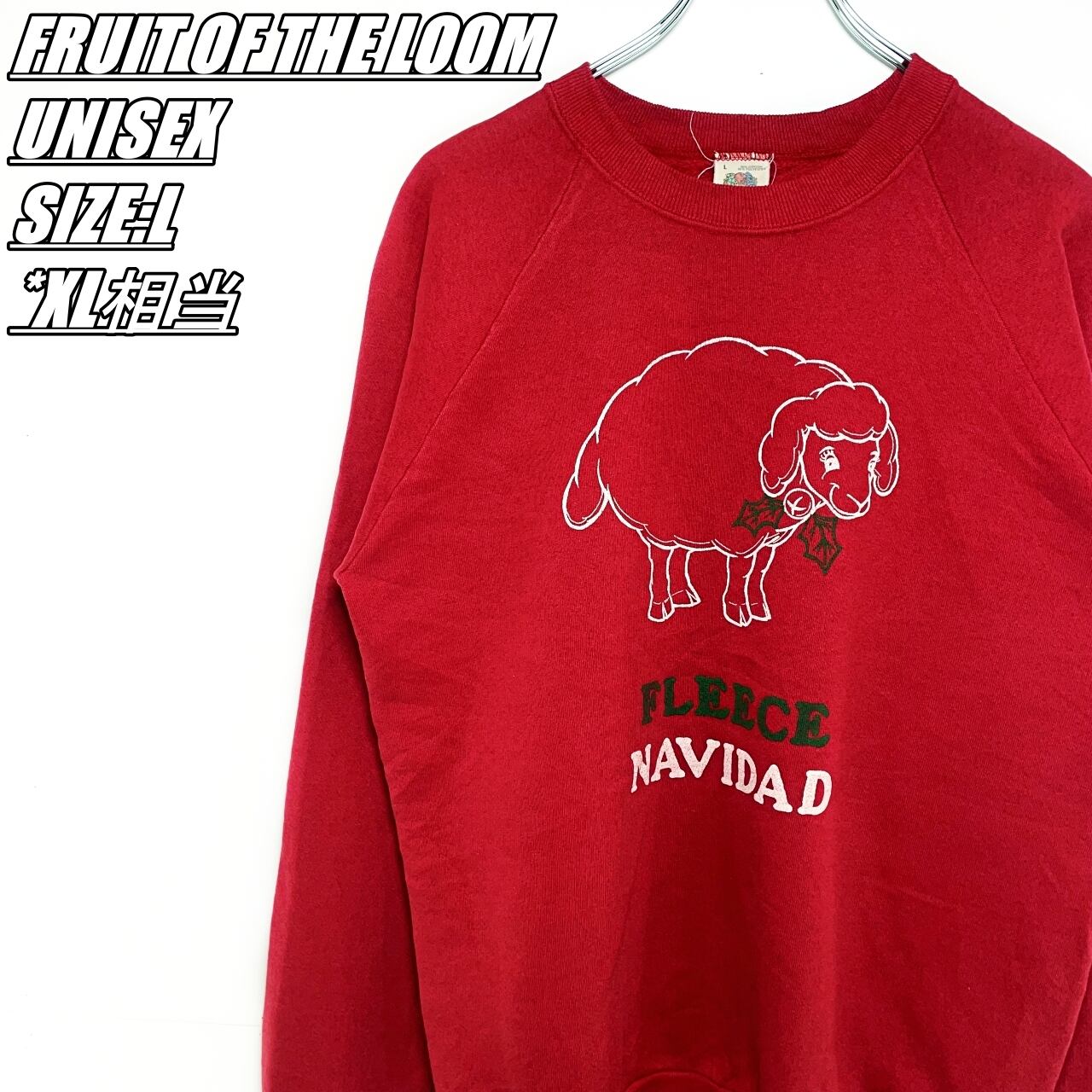 【90’s・USA製】FRUIT OF THE LOOM フルーツオブザルーム FLEECE NAVIDADプリントスウェット トレーナー ユニセックス 男女兼用 サイズ表記L XL相当 レッド